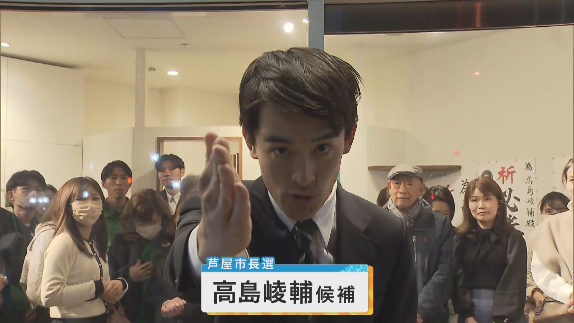 現職と新人3人の戦いとなった芦屋市長選挙ですが、無所属で新人の26歳、高島崚輔さんは“史上最年少”を前面に打ち出しての選挙戦を展開。 高島さんは、退職金の全額カットに18歳までの医療費の無償化や、訪問介護サービスの充実などを訴えていました。