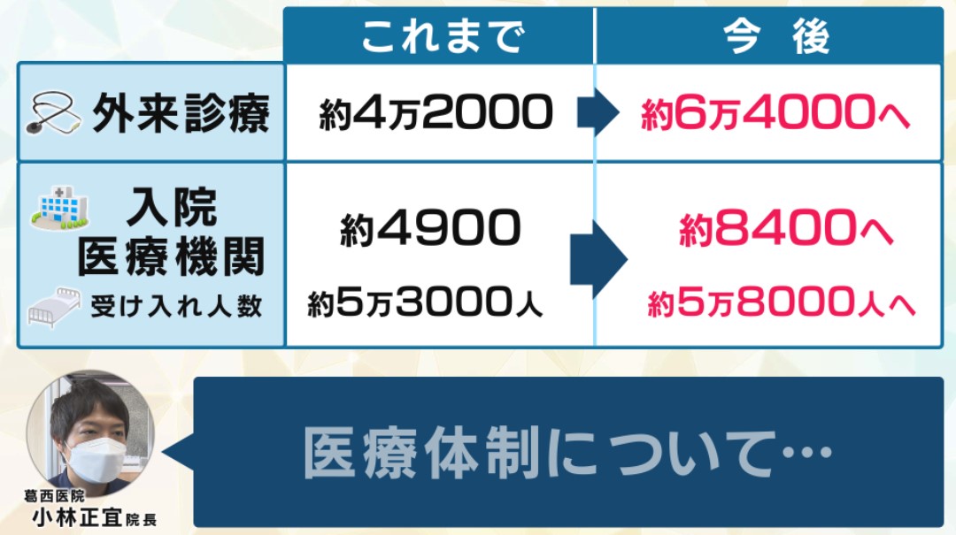 「確かに計画では外来診療は4万2000から6万4000へ…となっていますけれども、これはあくまでも計画であり、実際には、例えば先ほど小林院長が仰っていましたが、お医者さん自身が高齢であったりとか、その他、例えば眼科とか皮膚科とか、そういう『コロナ患者は診れませんよ』というお医者さんもいると思います。