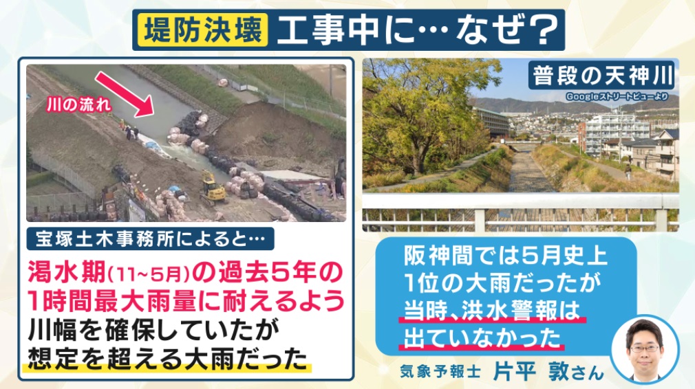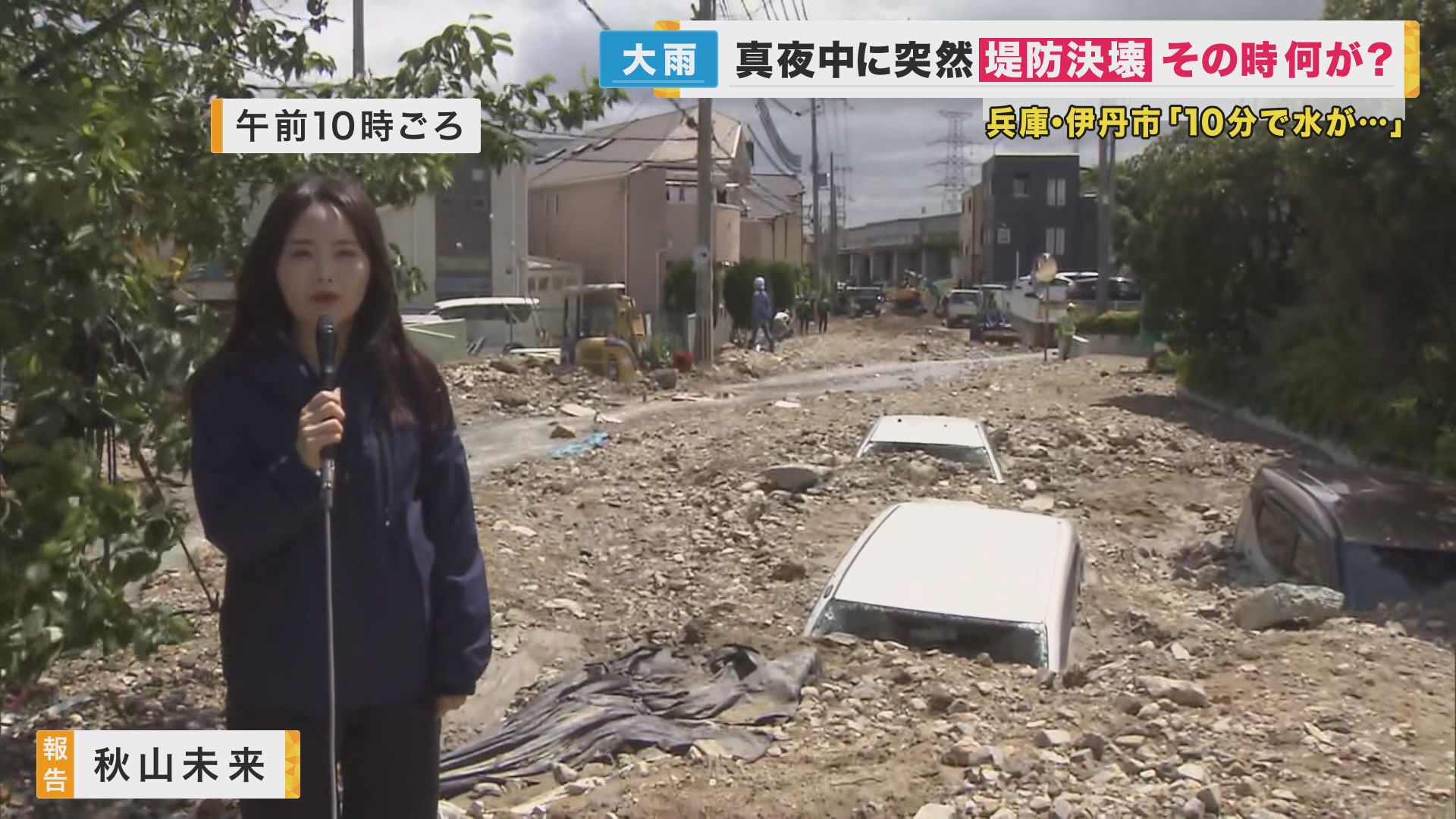 真夜中に突然 “堤防決壊” 車が土砂に…その時何が?住民映像は見た 兵庫県が堤防「強化工事中」で“川幅半分”…そこに『想定超える』水が その想定は“適正”だったか (写真ギャラリー 1/15) 記事にもどる