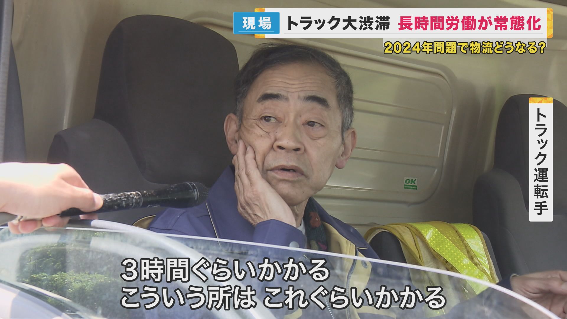 「3時間ぐらいかかる。こういう所はこれぐらいかかる。ちょっとは(待ち時間が)ましになってきましたけど。かかる所はもっとかかる。ドライバーの待機時間が長いから、労働時間も長くなりますよね」