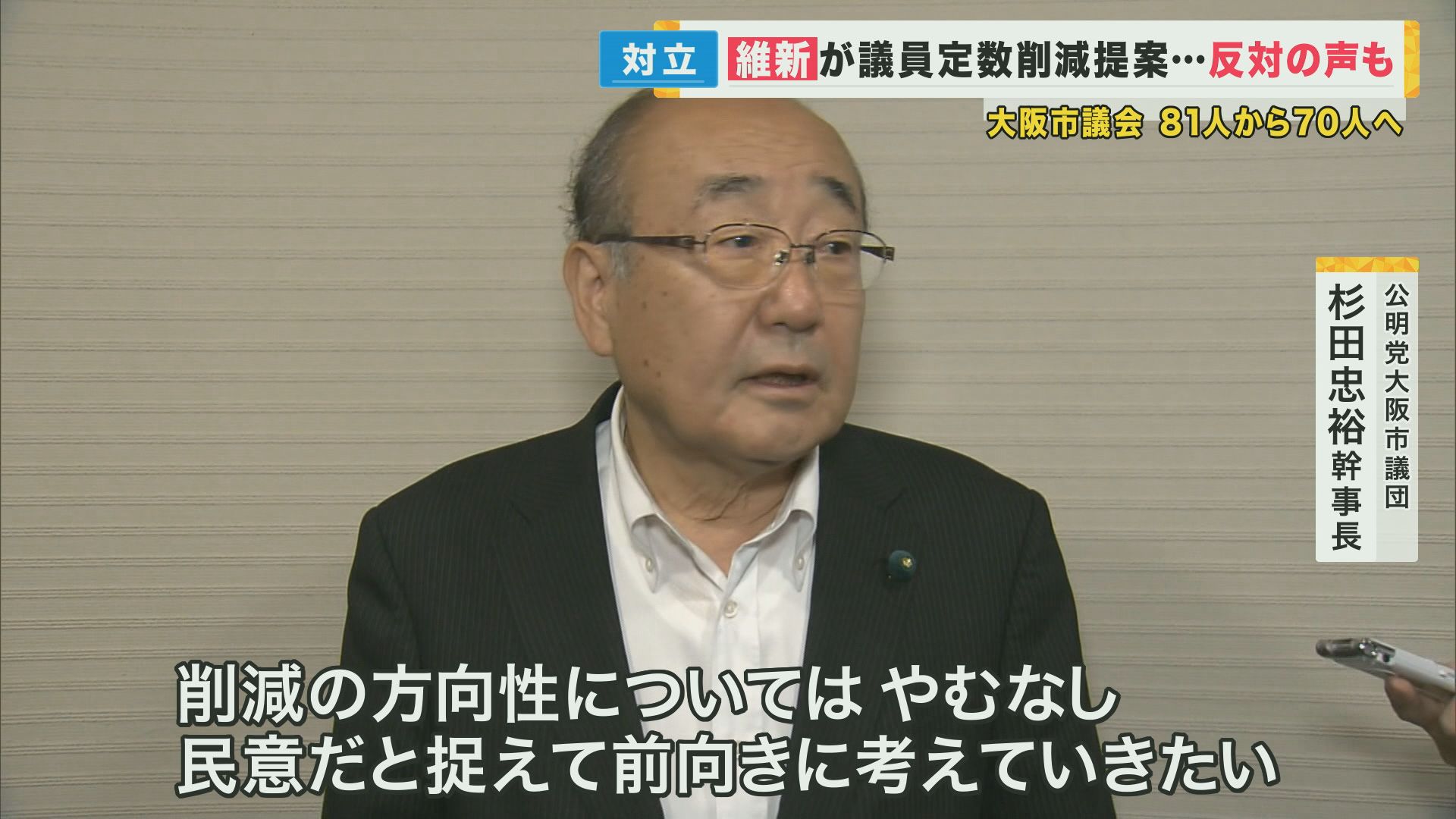 「削減の方向性についてはやむなし。民意だと捉えて、前向きに検討していきたい」