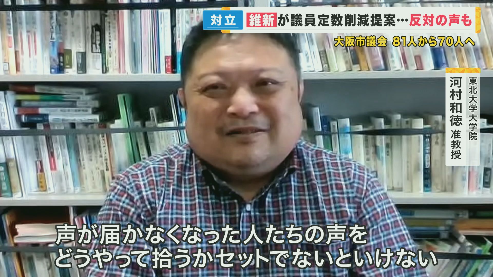 地方議会に詳しい東北大学の河村准教授も、議員の削減が民意の反映に影響する可能性を指摘します。
