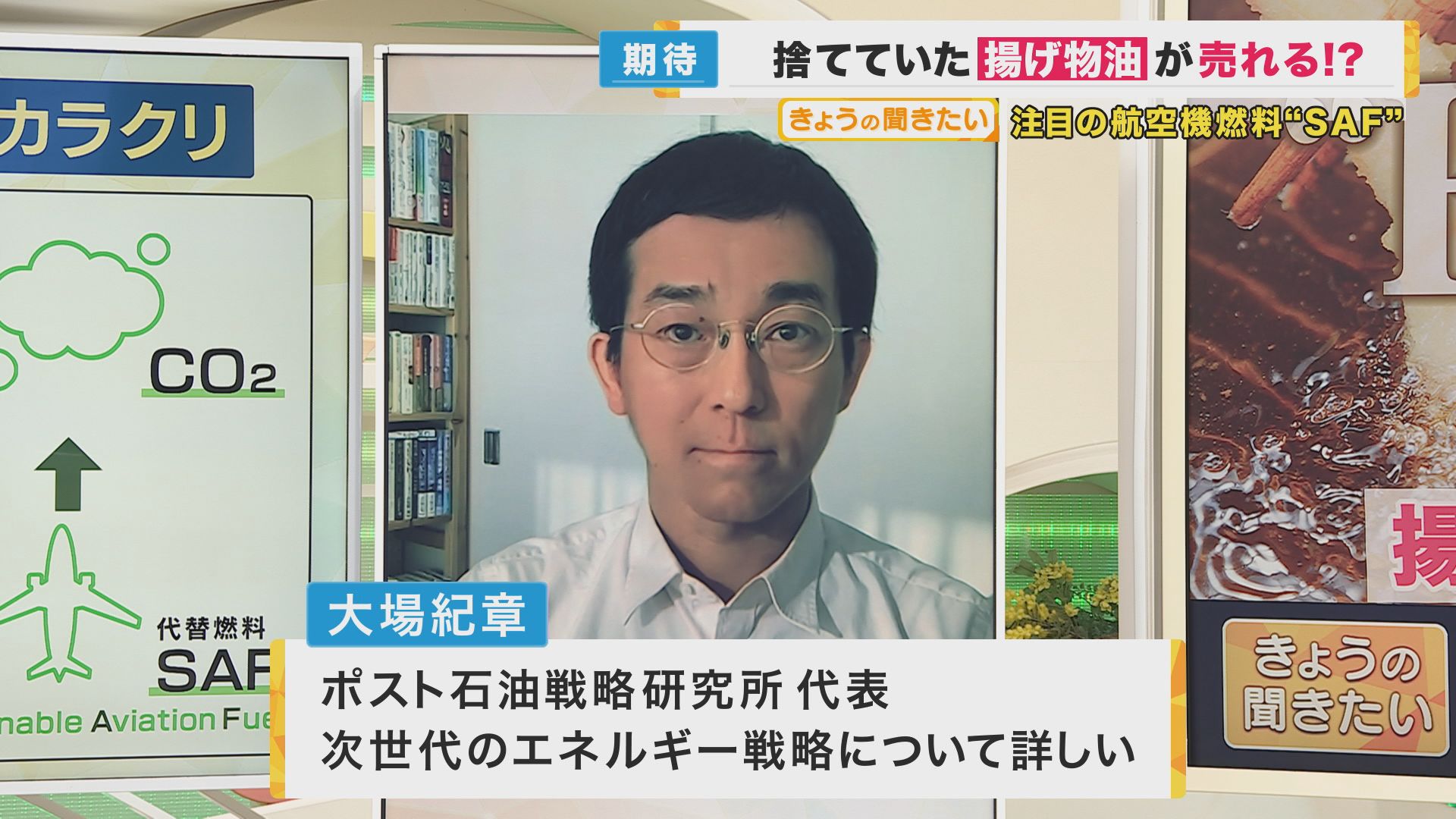 「廃食油の回収など面倒くさいことやっていると思われるかもしれません。”環境にいい”と聞くと、電気自動車を思い浮かべる方もいると思いますが、飛行機は電気では飛ばせないです。そこで、飛行機に関しては環境に優しい燃料SAFが注目されるようになりました。バイオ燃料の飛行機版みたいな感じですかね」