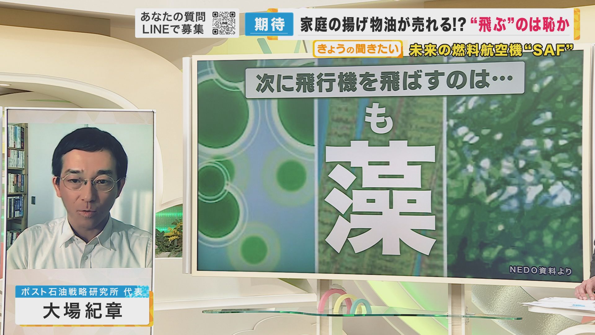 環境問題ももちろんですが、揚げもの油がおカネに変わる。さらには日本が開発をリードする「藻」が飛行機の燃料になる。環境にも優しくてリーズナブル…そんな未来が実現することを期待つつ、今後もSAFを巡る動向が注目されます。