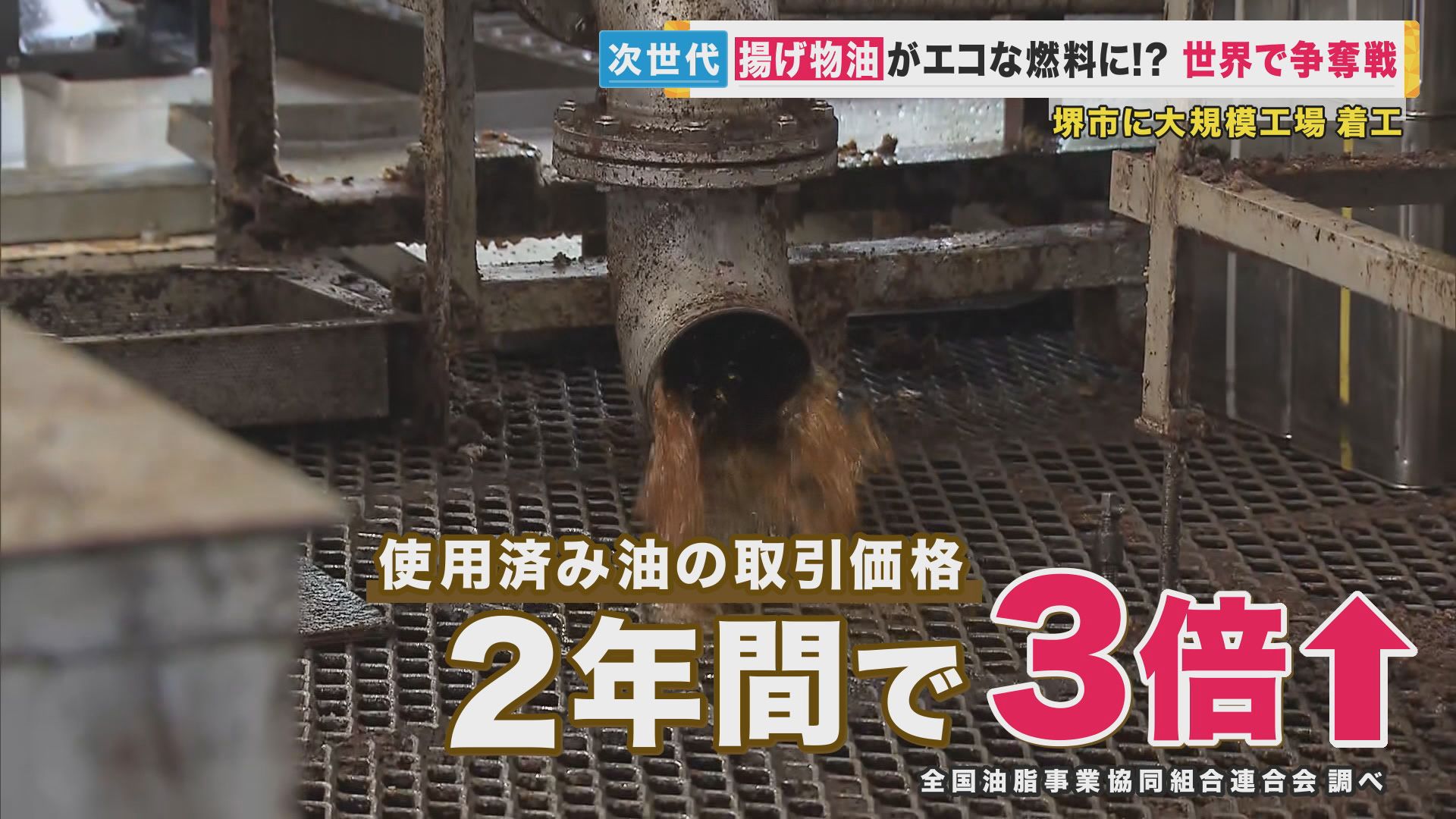 全国油脂事業協同組合連合会によると、「SAF」を作るという新たな需要が生まれたことで、”揚げ物油”の取引価格がこの2年でなんと3倍近くにまで高騰。世界で「”揚げ物油”争奪戦」が起きているのです。