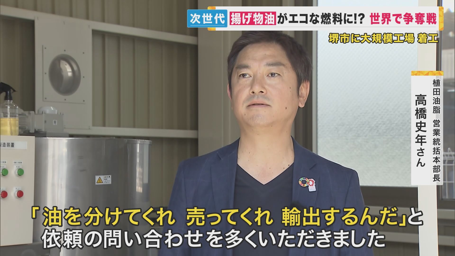 大阪府大東市の植田油脂はレストランやコンビニから月2千トンの”揚げ物油”を回収していますが、世界からの需要の高まりを感じていると言います。