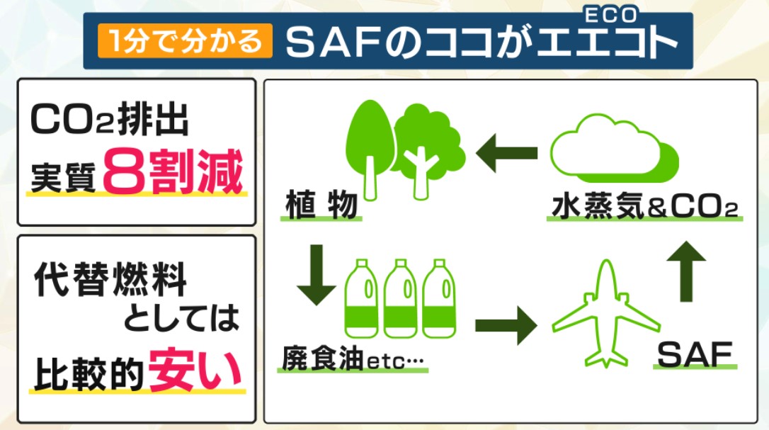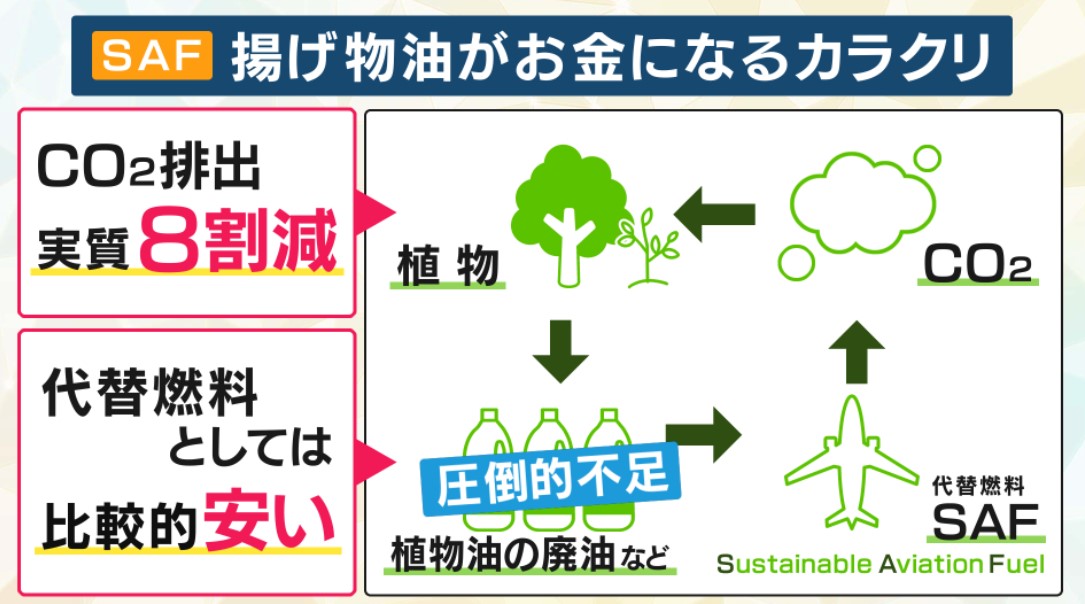 そんな中、”揚げ物油”の新たな使い道として浮上したのが、飛行機の燃料「SAF(サフ)」です。