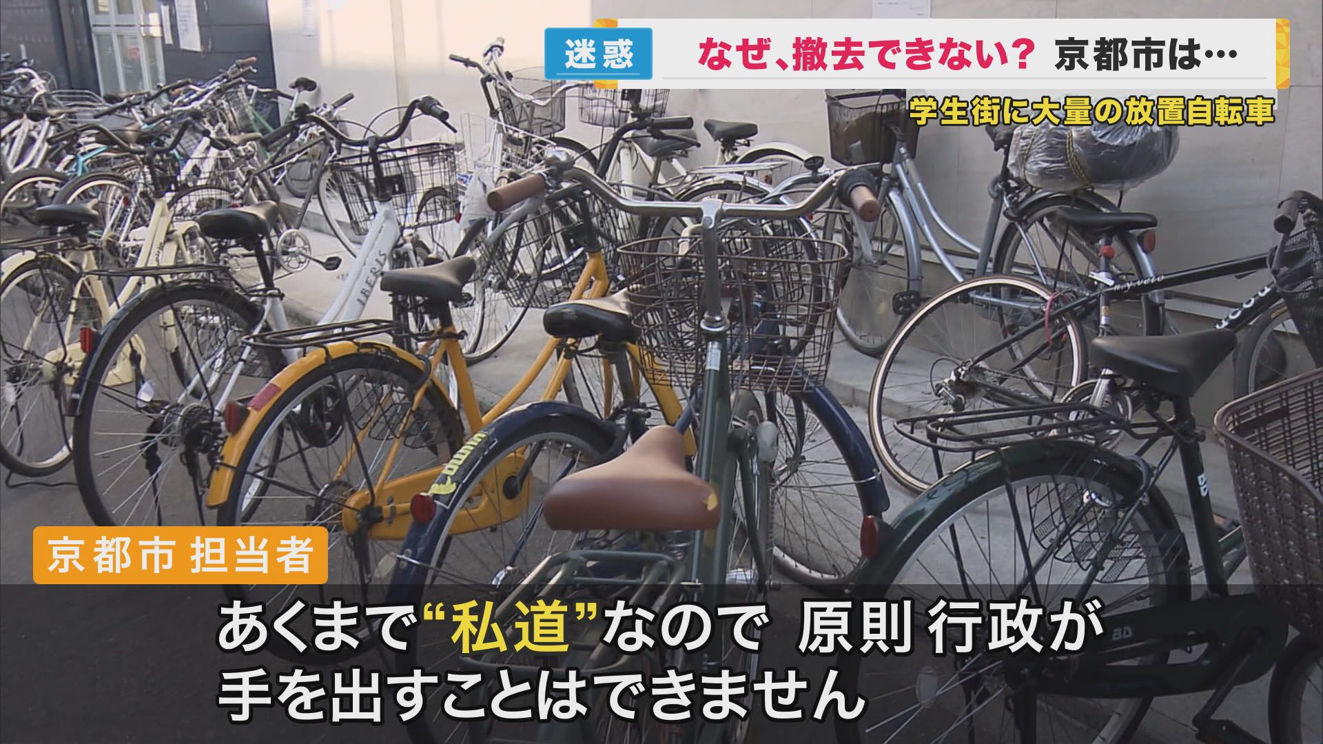 京都の学生街で…“放置自転車”がずらっと並ぶ「最悪の路地」 地域住民にとっては『生活道路』だが“無料の駐輪場”状態に 一体、なぜ?背景を取材 2023年05月17日