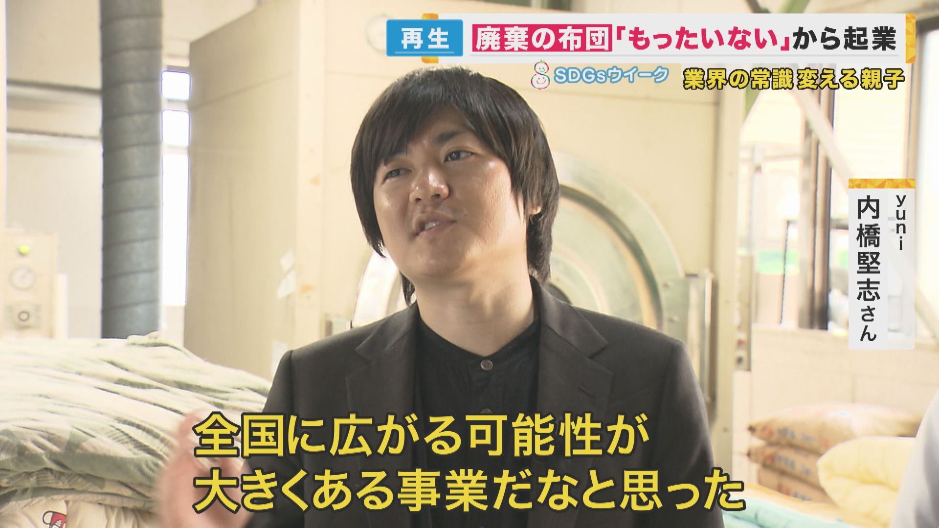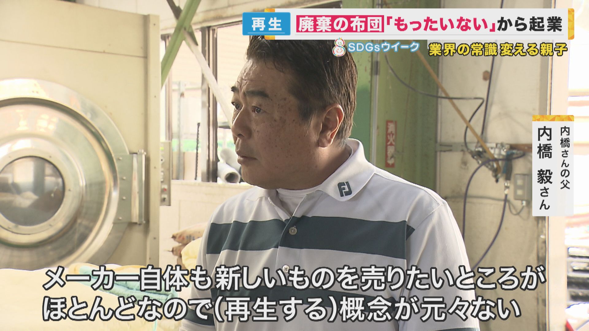 内橋さんは一度は会社員として勤めるも、業界の課題を解決しようと起業を決意。親子で布団のリサイクルに取り組んでいるのです。