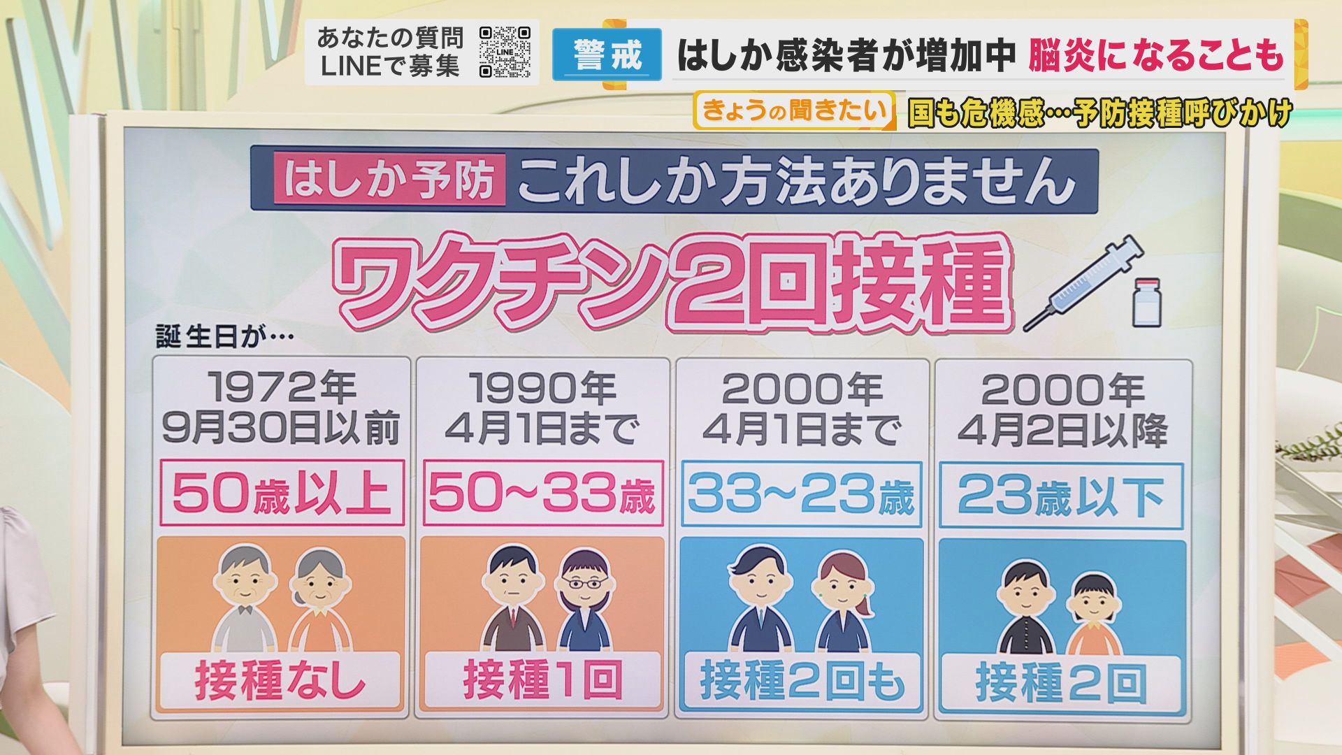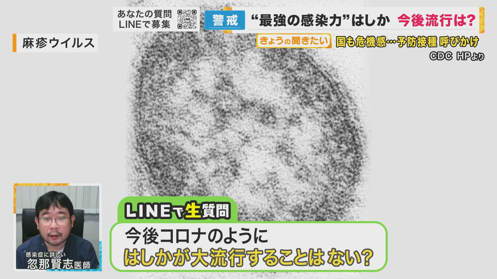「基本的にそこまで広がることはないと見ています。なぜなら80%後半の人は麻疹(=はしか)に対して十分な免疫があると考えられているためです。ただ一部の人は免疫がないため、その方が感染しないようにワクチン接種歴を確認してもらい、接種していなければ接種してもらうのが良いかと思います」