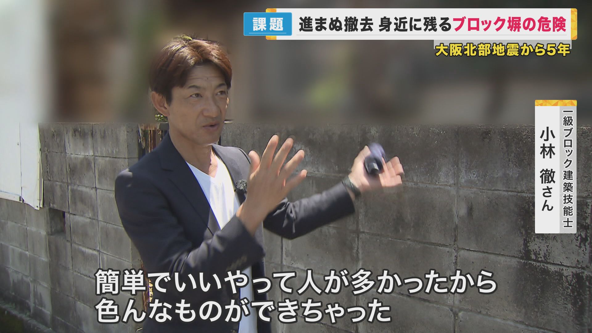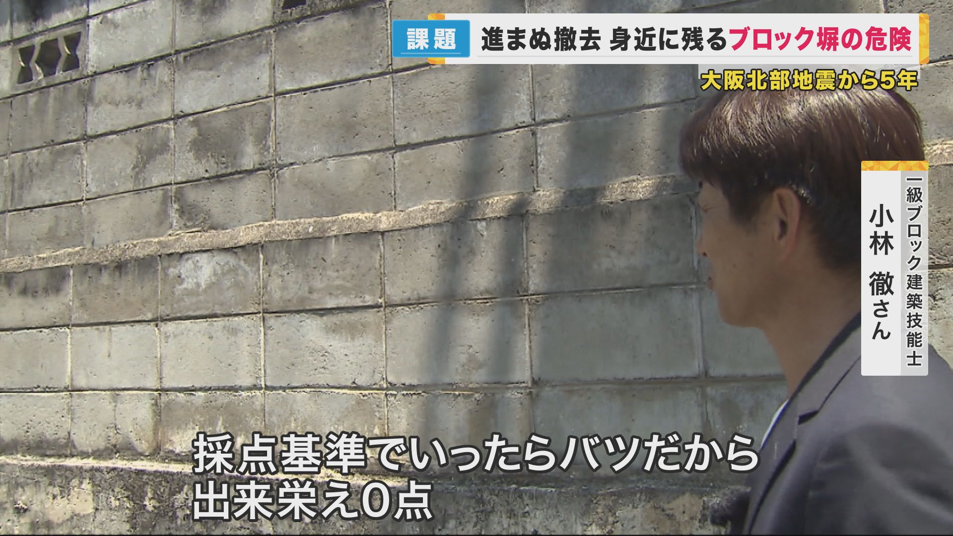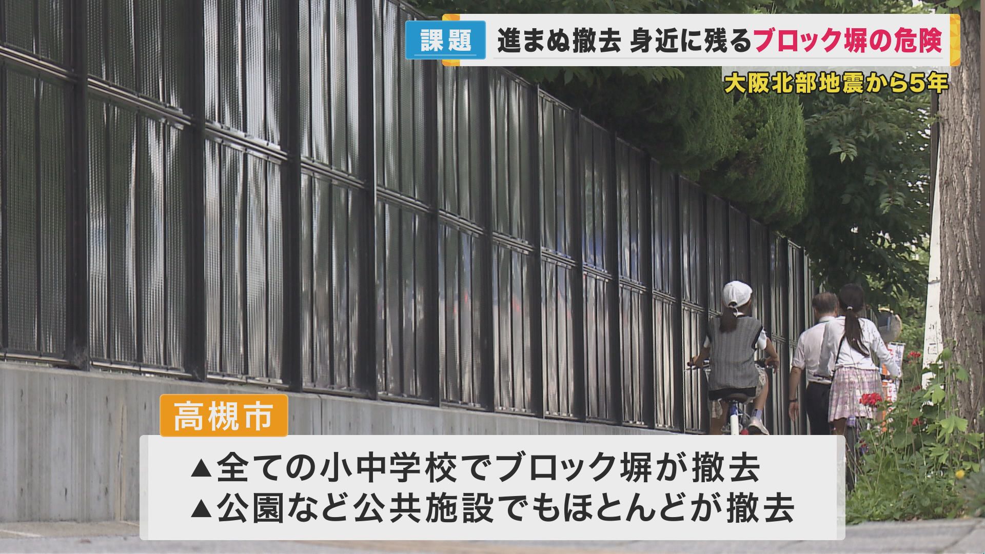 最大震度6弱を記録した「大阪北部地震」から6月18日で5年がたちました。この地震で問題となったのが、当時小学4年生の児童など2人が死亡した「ブロック塀の倒壊」。5年たった今、取材して見えてきたのは、いまだ身近に残り続けるブロック塀の危険性でした。