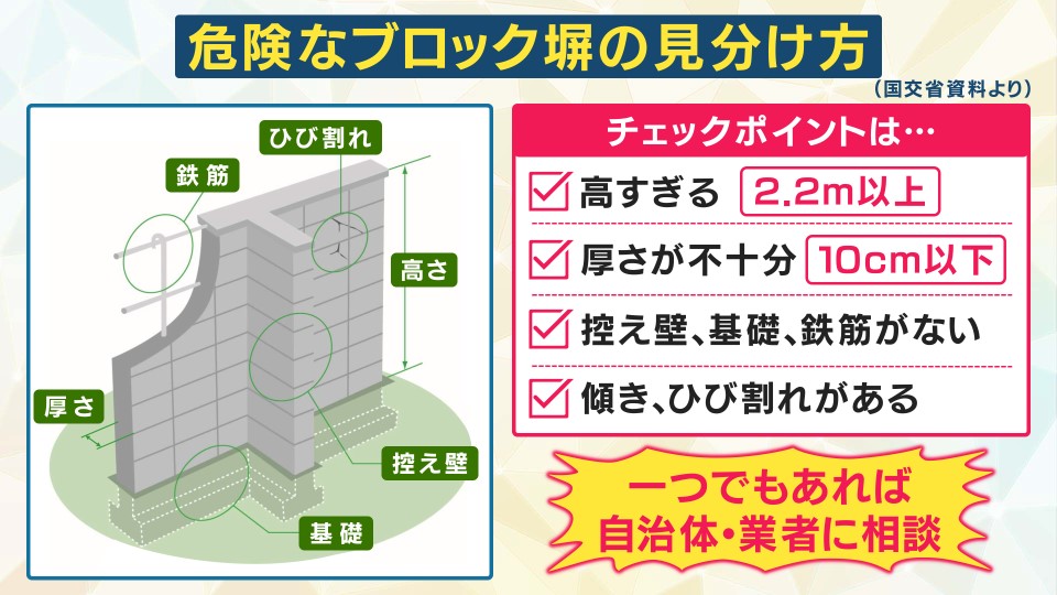 ■あなたの家大丈夫? 危険なブロック塀 当てはまる点1つあれば“要注意”!