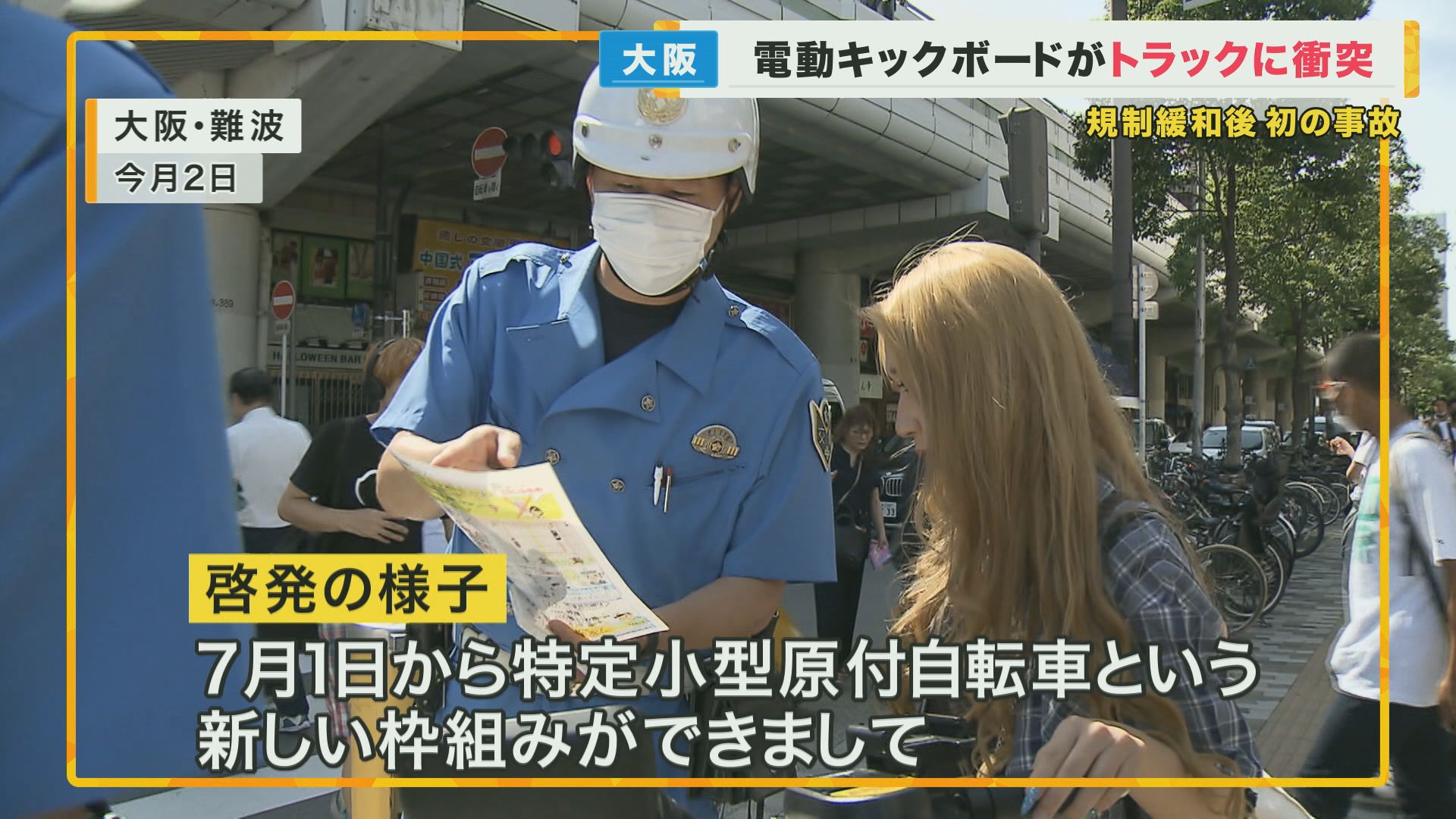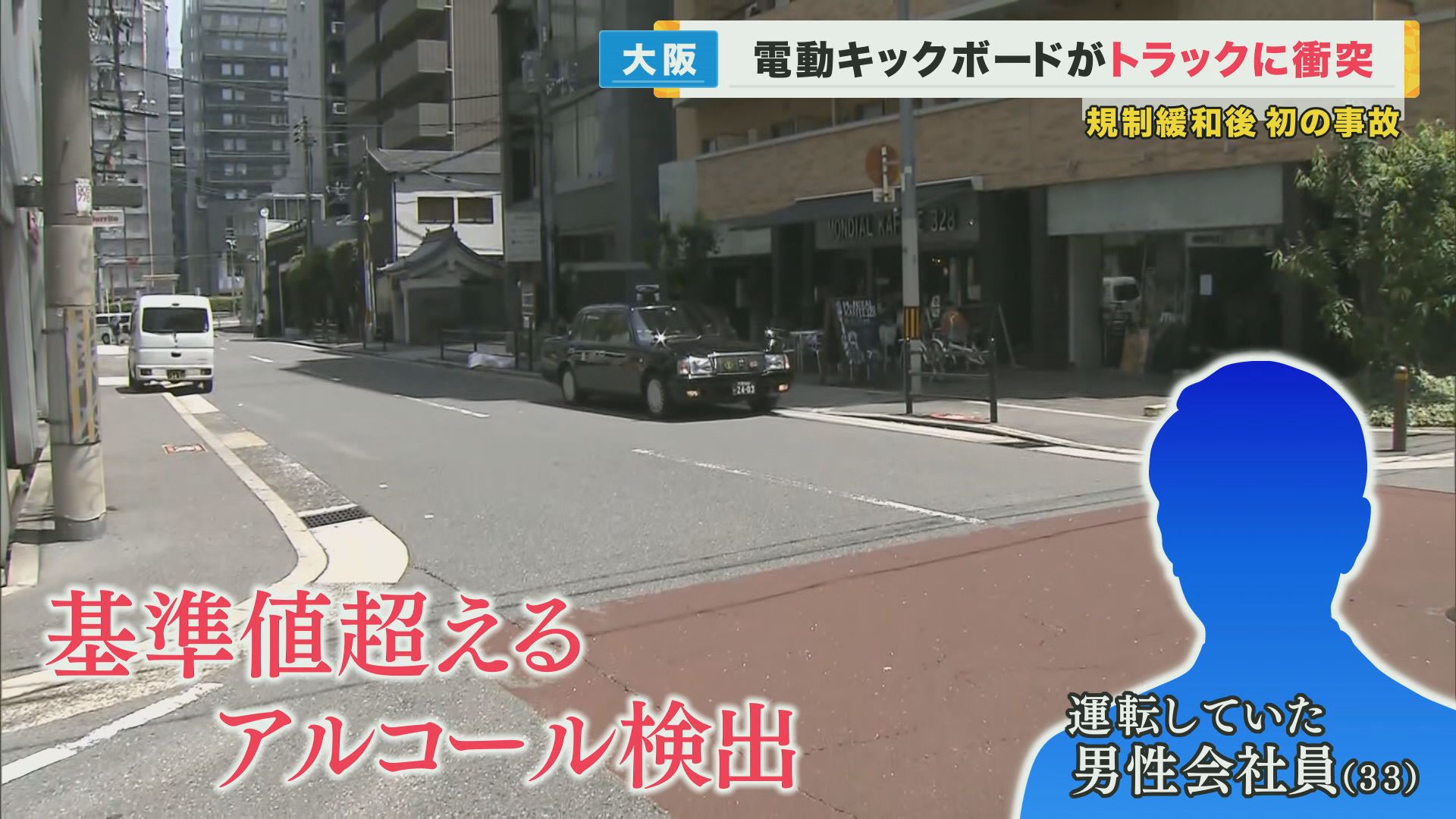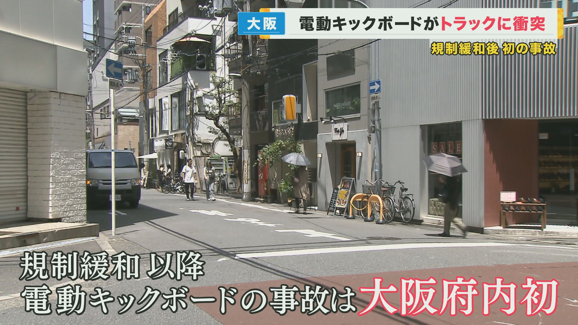 電動キックボードとトラックの衝突事故 規制緩和後、大阪で“初めての事故” 男性会社員が一時停止せず