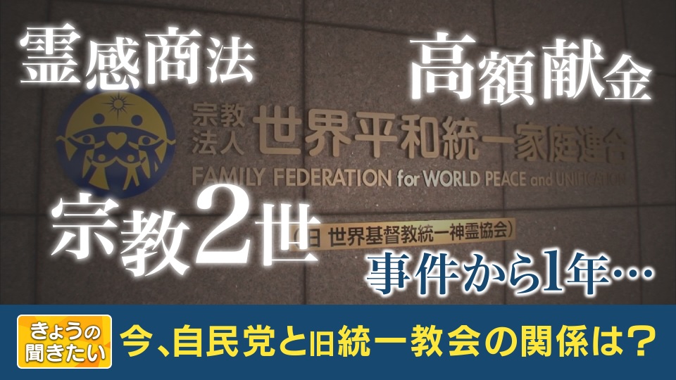 あの日をきっかけに、旧統一教会による“霊感商法”、“高額献金”そして、“宗教2世”などの問題が次々に明らかになりました。事件から1年が経ち、旧統一教会は今、そして自民党との関係について詳しく見ていきたいと思います。