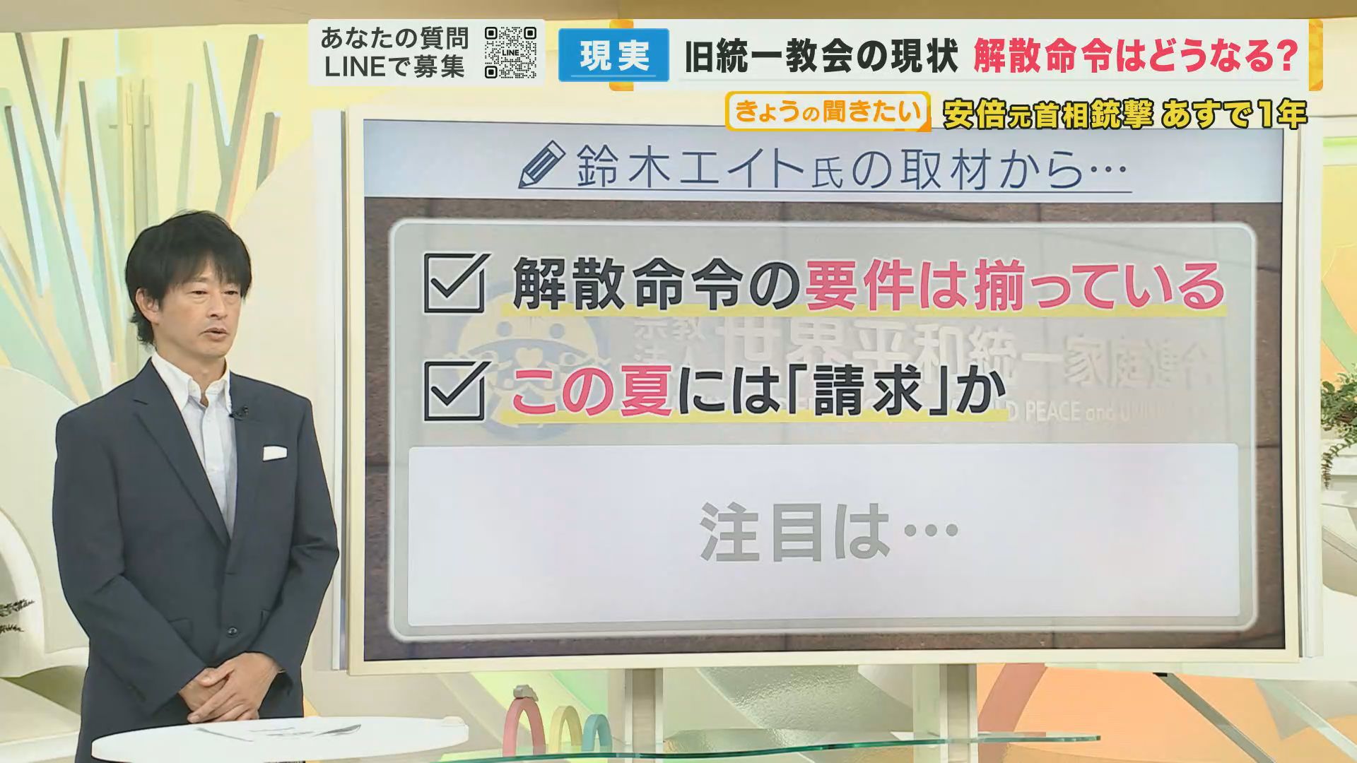 【安倍元首相銃撃1年】事件で明らかに…旧統一教会と自民党の関係は“いま”も? 鈴木エイト氏が解説「夏には解散命令請求が出され教団は『終わりの始まり』か…大物議員の“横やり”あるか注視」 2023年07月10日