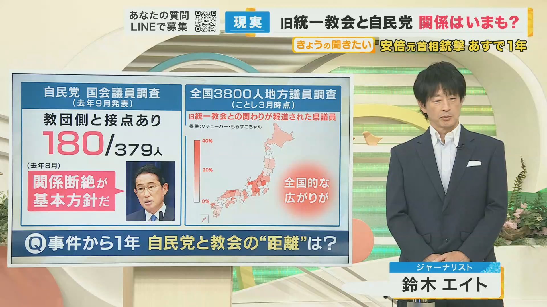 安倍元首相銃撃事件から7月8日で1年…次々と浮かび上がったのが旧統一教会と政治家が深く関わっていたという問題です。事件から1年、本当に断ち切ることができたのでしょうか。長年、旧統一教会内部の独自取材を続けるジャーナリストの鈴木エイトさんに、「自民党は、教会との関係を断ち切れたのか」など詳しく聞きます。