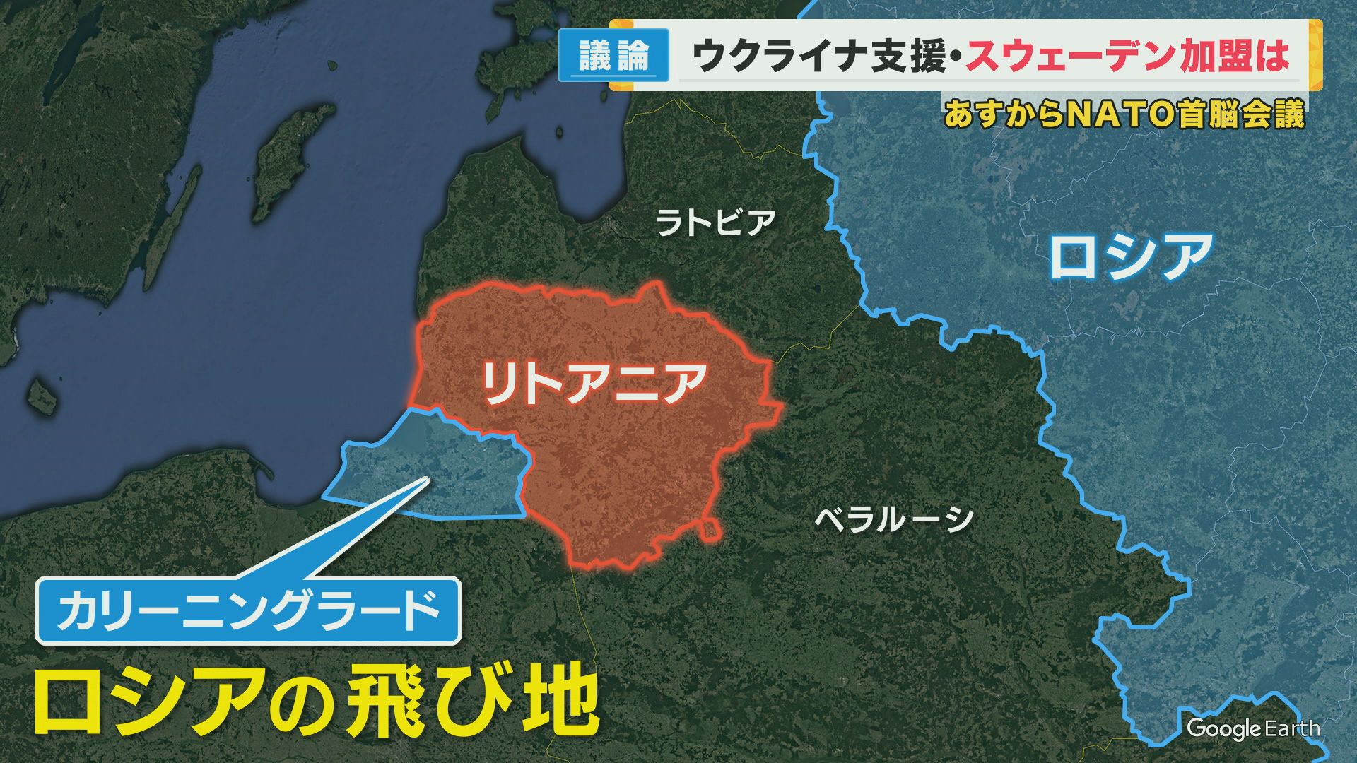首脳会議が開かれるのは東ヨーロッパの加盟国の1つ、リトアニア。 ロシアによる脅威が身近に感じられている国です。 地図を見ると一見ロシアとは離れているように見えますが、実は西側に、ロシアの”飛び地”カリーニングラードがあり、日本と同様に「隣国」なのです。