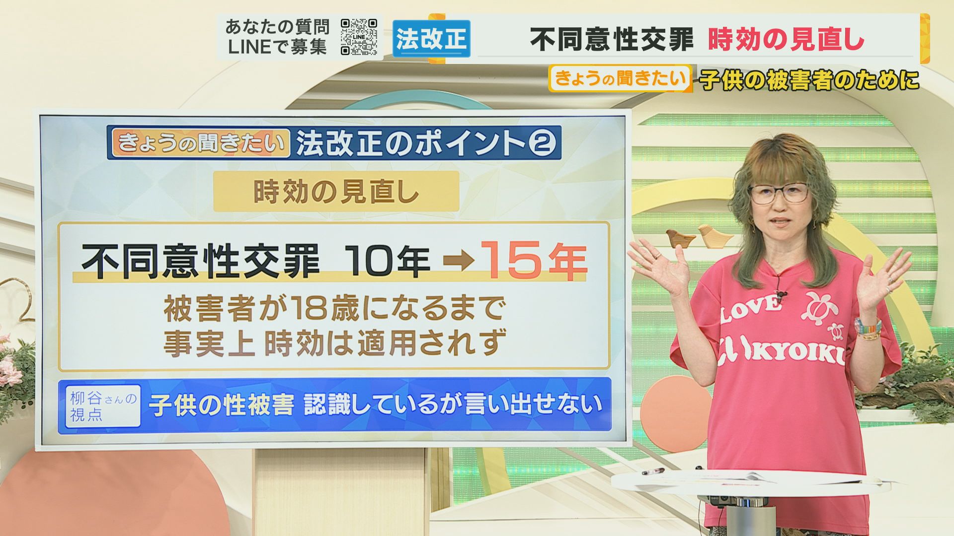 「実情として、性被害は言い出しにくいところがあると思います。ただ法律の世界で、他の重罪は時効が何年で、それより時効が短くなるとか、全体のバランスを立法者は考えます。だから例えば『言い出せない期間』を、時効が停止するといった考えはあるかも。罪を問おうと思っても問えない期間というようなものを当てはめて、精神的に告白しようと思ってもできない期間は時効をストップするなど、別の解決方法もあろうかと思います」