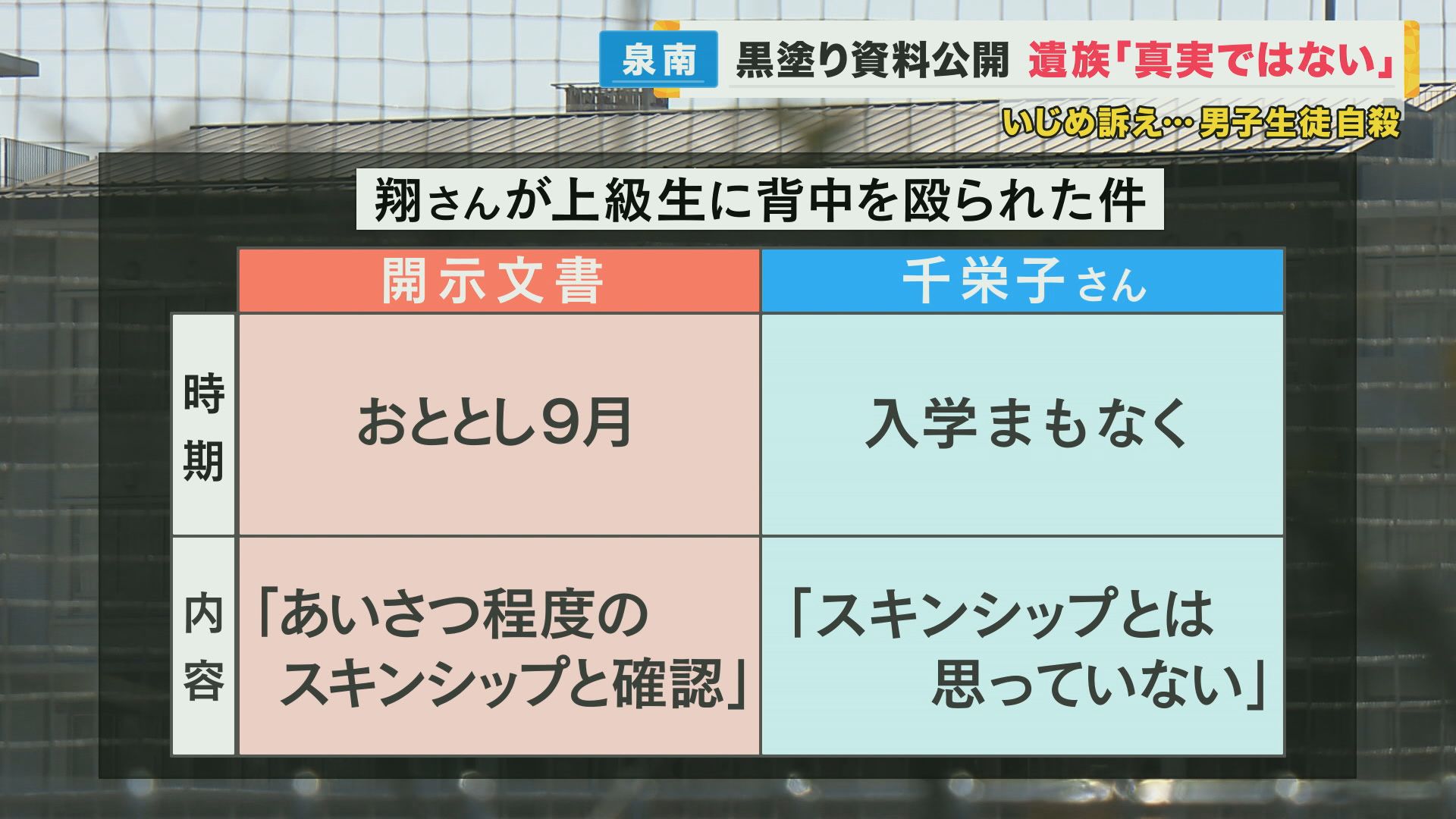 いじめ訴え…13歳の中学生が自殺 ”黒塗り”だった内部資料を市教委が公開 「書かれている内容は真実と違う」と遺族 『資料が第三者委の調査材料となることを危惧』 大阪・泉南市 (写真ギャラリー 5/7) 記事にもどる