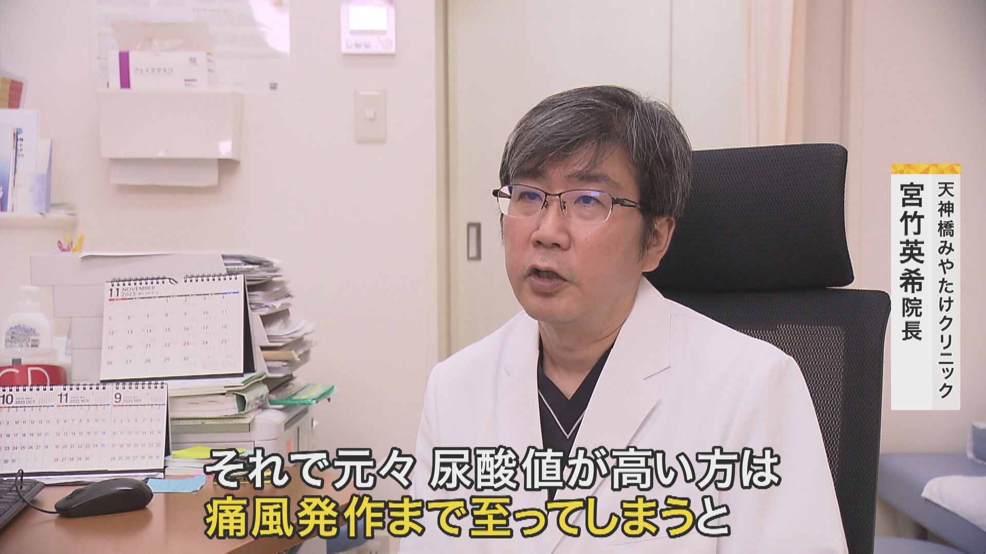 「夏場に関しては、熱中症にもつながりますけど、みなさん脱水傾向になりやすい。知らない間に水が抜けているということでしょうね。それで、もともと尿酸値が高い方は痛風発作まで至ってしまうと」