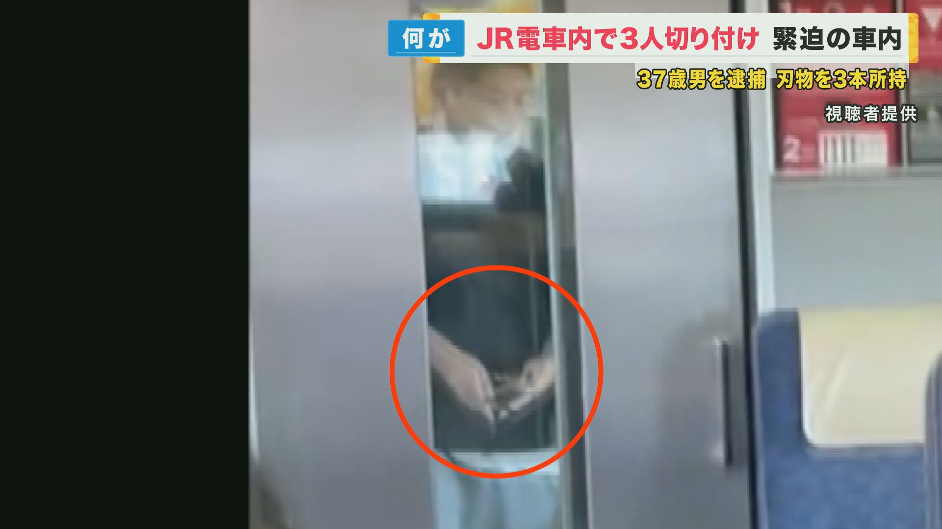 車内で何が? JRの電車内で乗客ら3人に切りつけ 緊迫の一部始終を被害者が語る「目もあっていないのに」 殺人未遂の現行犯で37歳男を逮捕 逮捕時には3本の刃物を所持 2023年07月24日