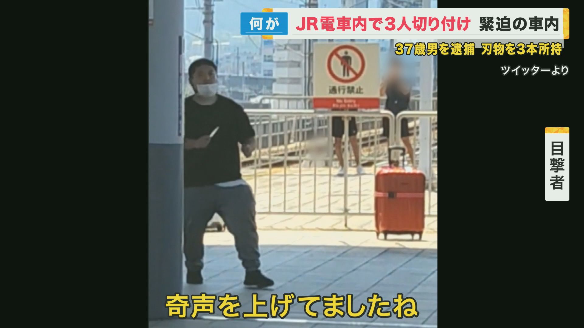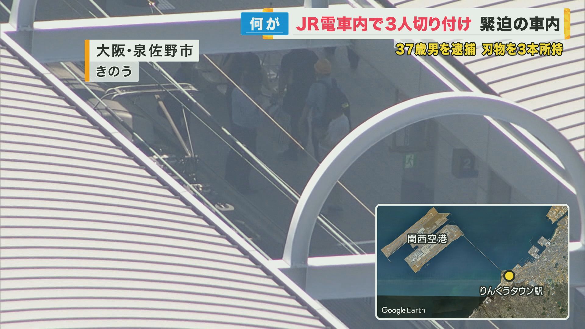 7月23日、大阪府泉佐野市内を走るJR西日本の電車内で、乗客ら3人が次々と切り付けられ、37歳の男が逮捕されました。