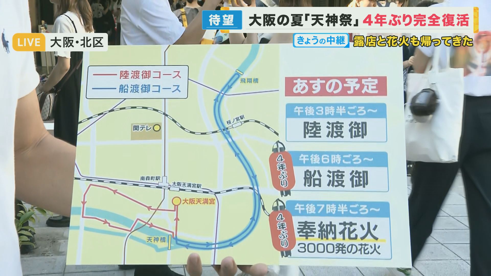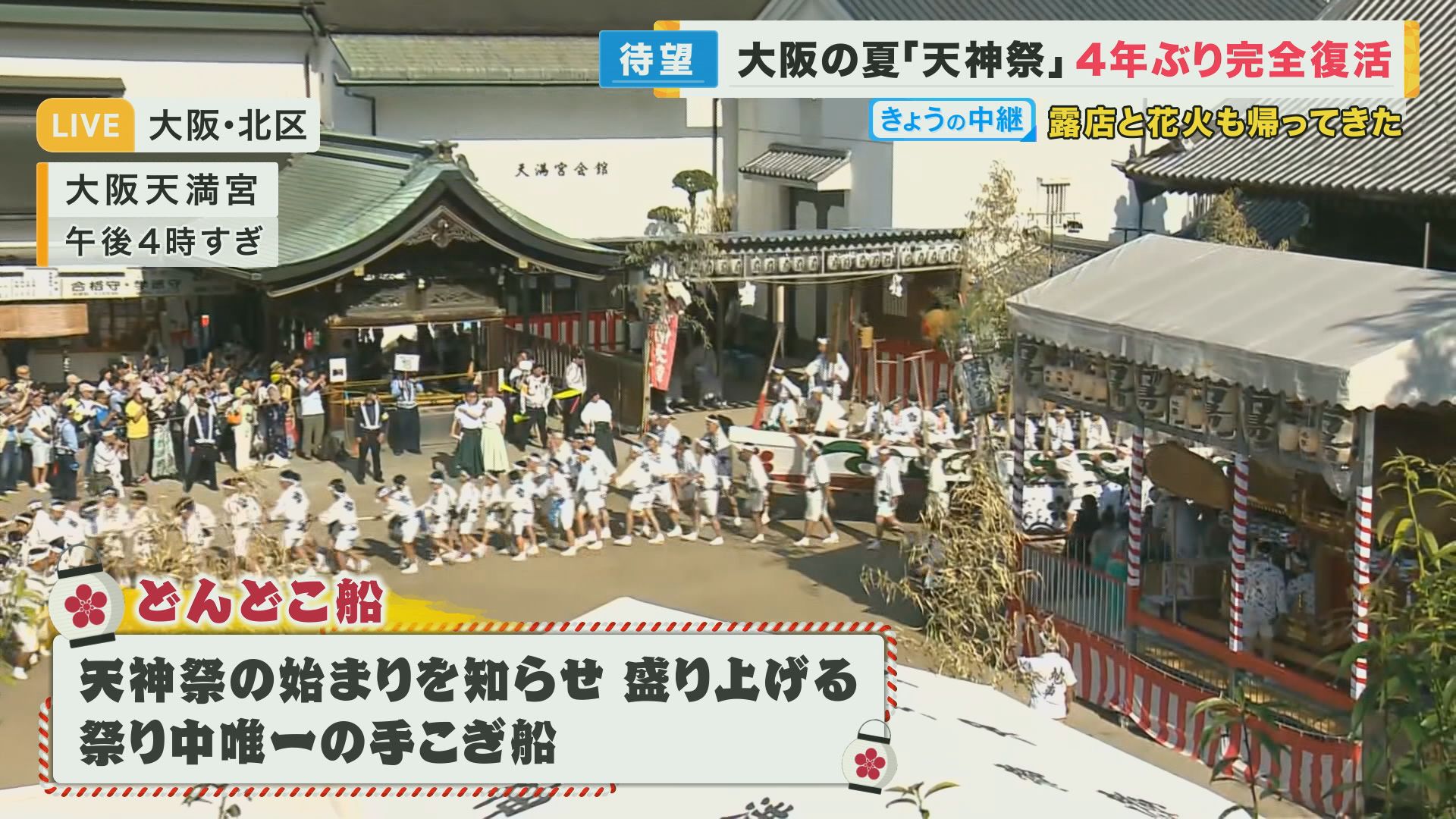 大阪の夏が帰って来た!4年ぶり花火や出店も”完全復活”の「天神祭」 韓国の”雑踏事故”ふまえ対策も