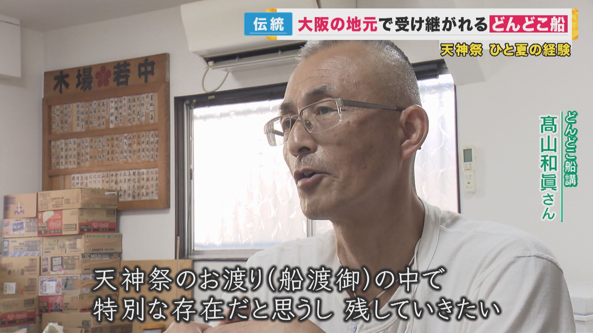 「(船渡御で)手こぎの船はうち(どんどこ船)しかない。昔の天神祭の姿の一部がどんどこ船。これは、天神祭のお渡り(船渡御)の中で特別な存在だと思うし、残していきたい」