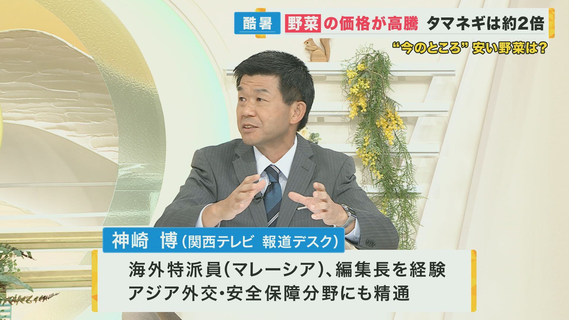 「関西では野菜が軒並み高くなっていますが、全国的に見ていくと雨は降っていたりとか、気温がまあまあ普通なところもあったりするので、全国的にみると、そこまで高騰してないところもあります。
