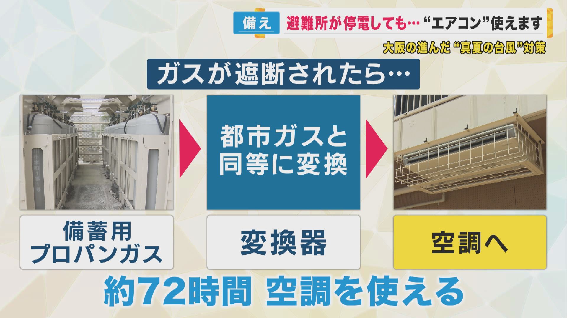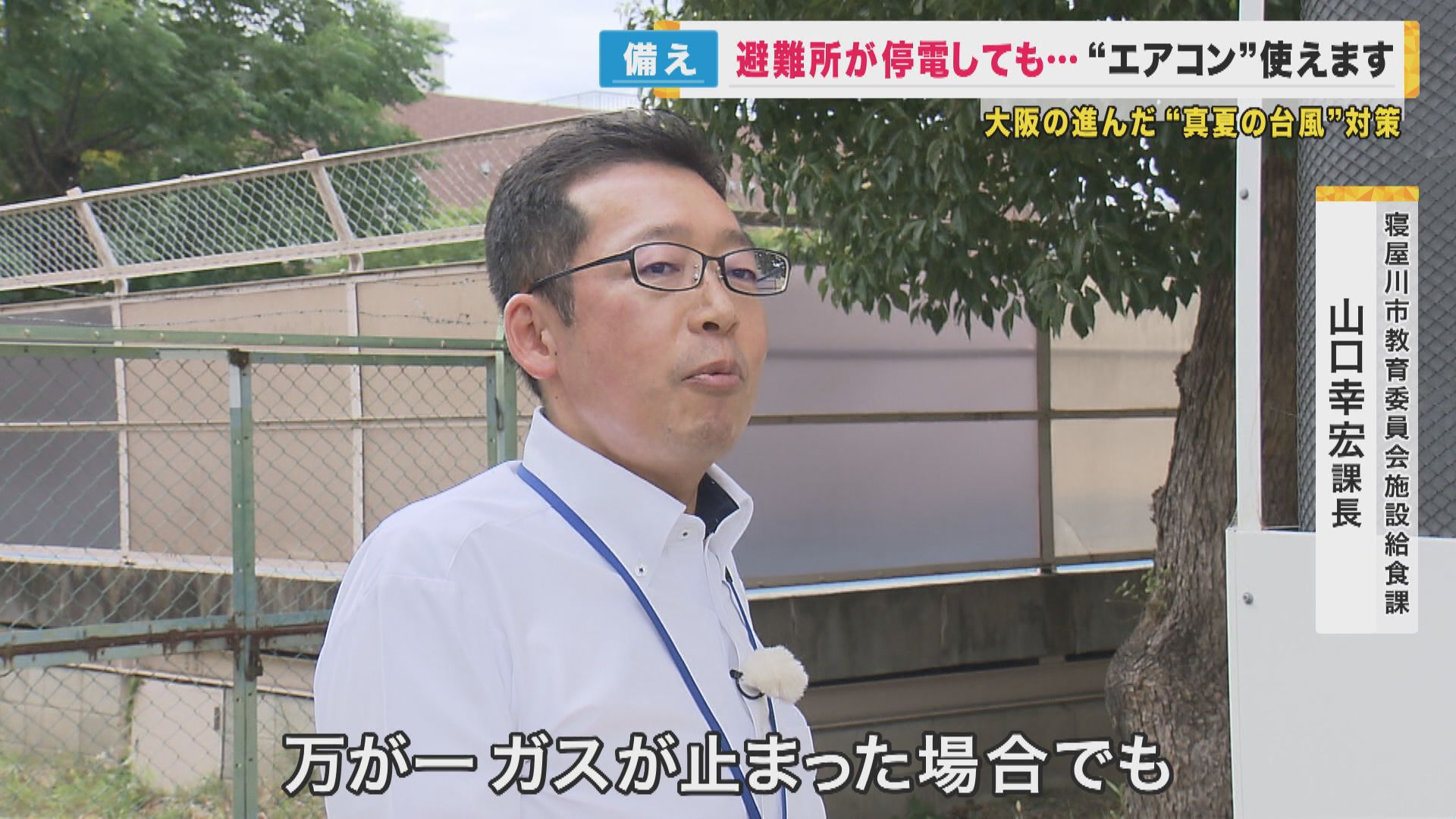 導入のきっかけは2018年9月、最大瞬間風速58.1メートルを記録するなど、関西で猛威をふるった台風21号。 関西電力管内では一時、およそ225万戸が停電し、暑さが残る中での避難所開設となりました。 その時にはまだエアコンがなく、空調の必要性を感じたといいます。