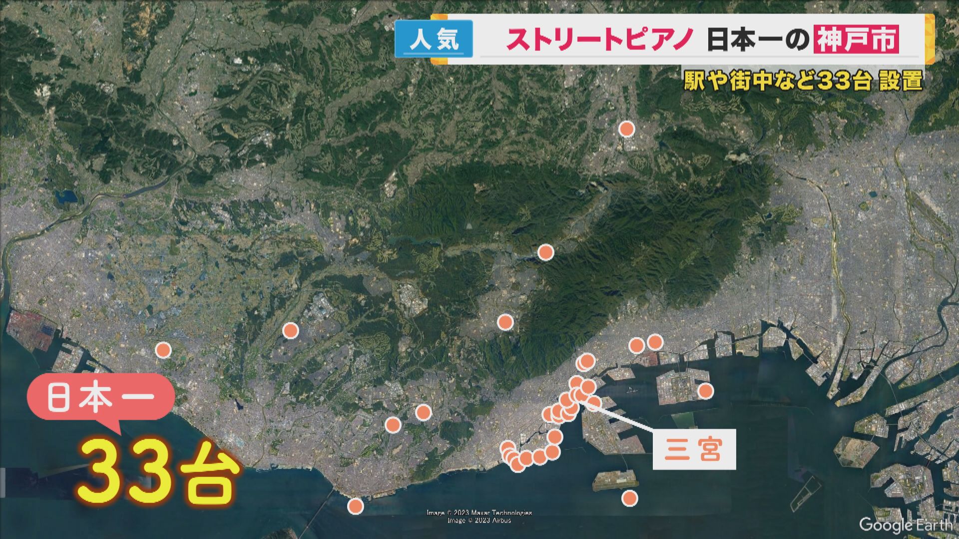 中でも、ストリートピアノの「聖地」と呼ばれているのが神戸市です。2019年に中央区で設置されたのを皮切りに、すべての区に置かれ、現在は市内だけで33台、神戸市によると、全国の市区町村で最も多い設置数となります。