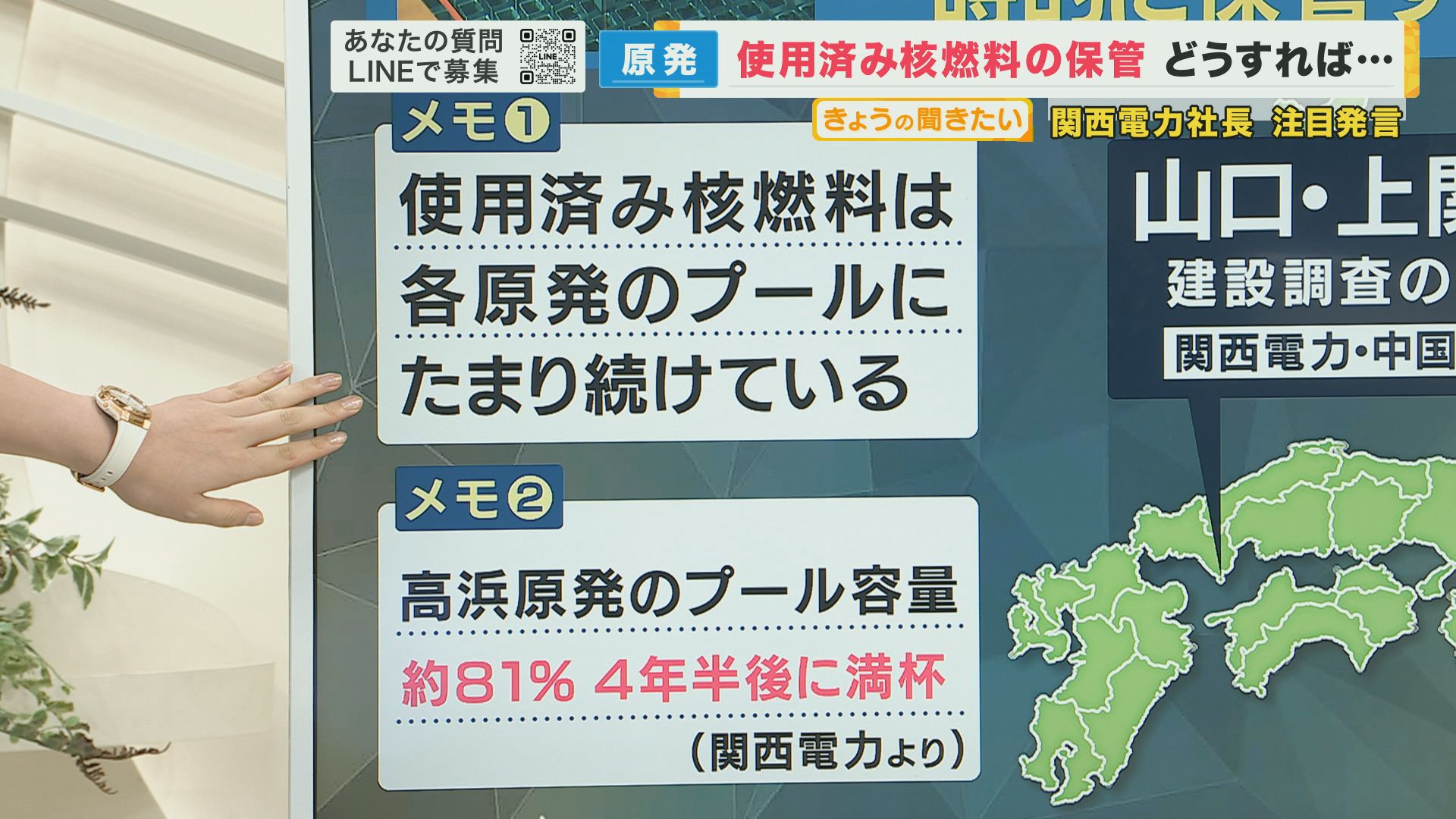・高浜原発のプール容量は約81%が使用されていて、4年半後には満杯になる予定です。