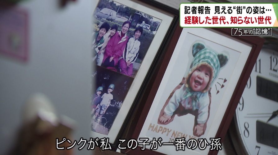 「あれがね、ピンクが私。この子が第一番のひ孫」(写真を指差して)