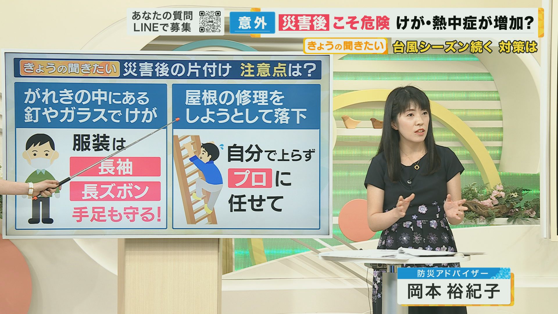 いま台風7号による被害の復旧作業を行っている方がいます。これから台風シーズンが続く、この時期だからこそ知っておいてほしい、災害後に注意すべきことについて、防災アドバイザーで大阪狭山市の消防団にも所属されている岡本裕紀子さんに聞きました。