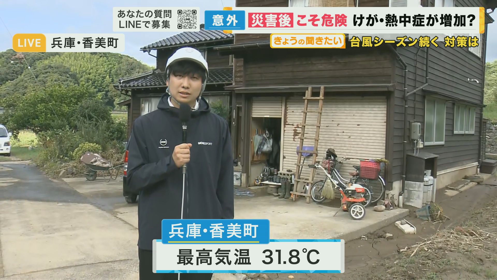この時期に気を付けないといけないのは、“熱中症”です。台風7号の被害を受けた兵庫県香美町の現場から中継です。現場では片付けの最中に熱中症で病院に運ばれるような方はいらっしゃいませんでしょうか?