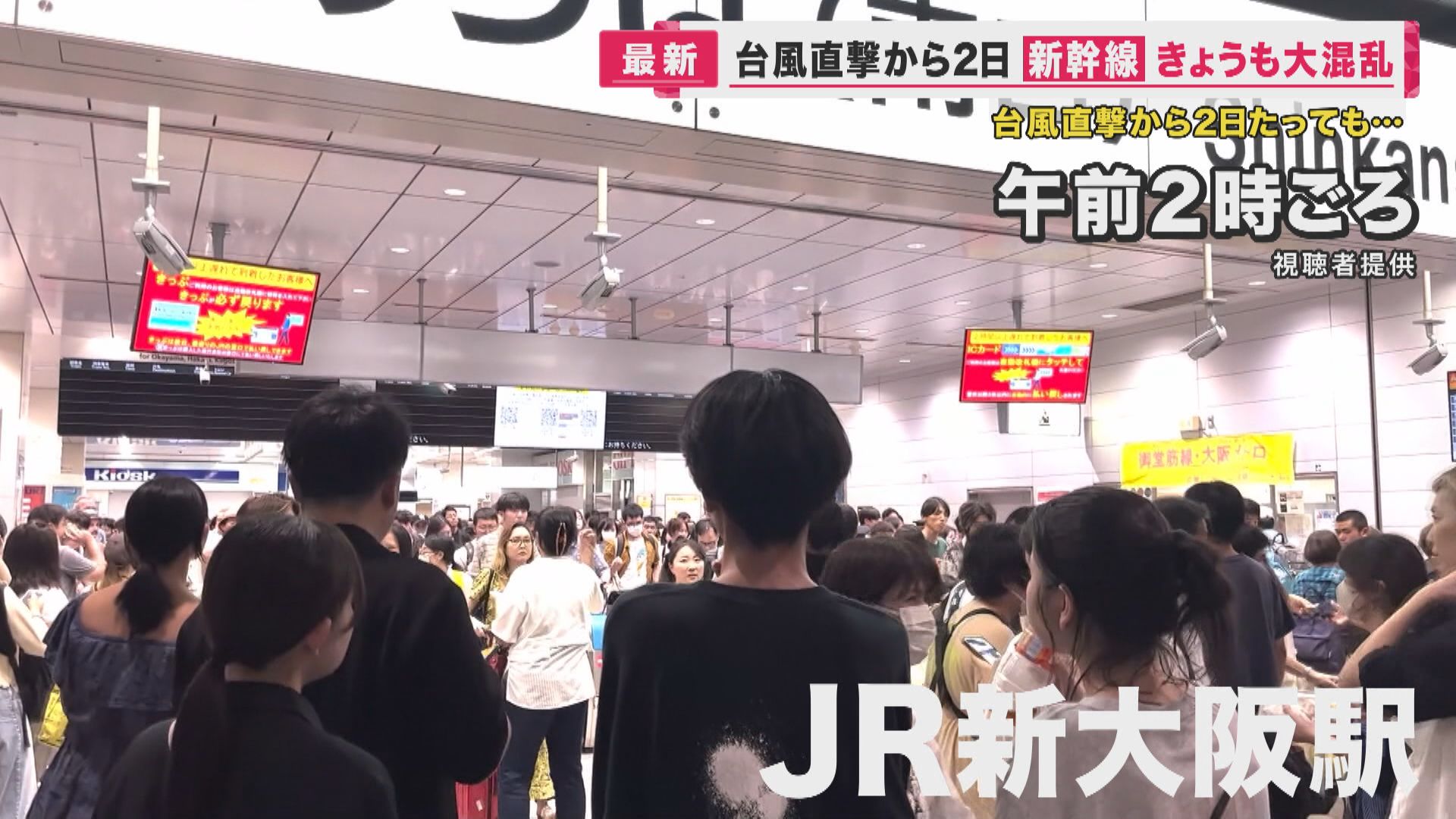 【17日午前2時ごろ】 新大阪駅は、未明にもかかわらず、新幹線を待つ乗客でごった返していました。