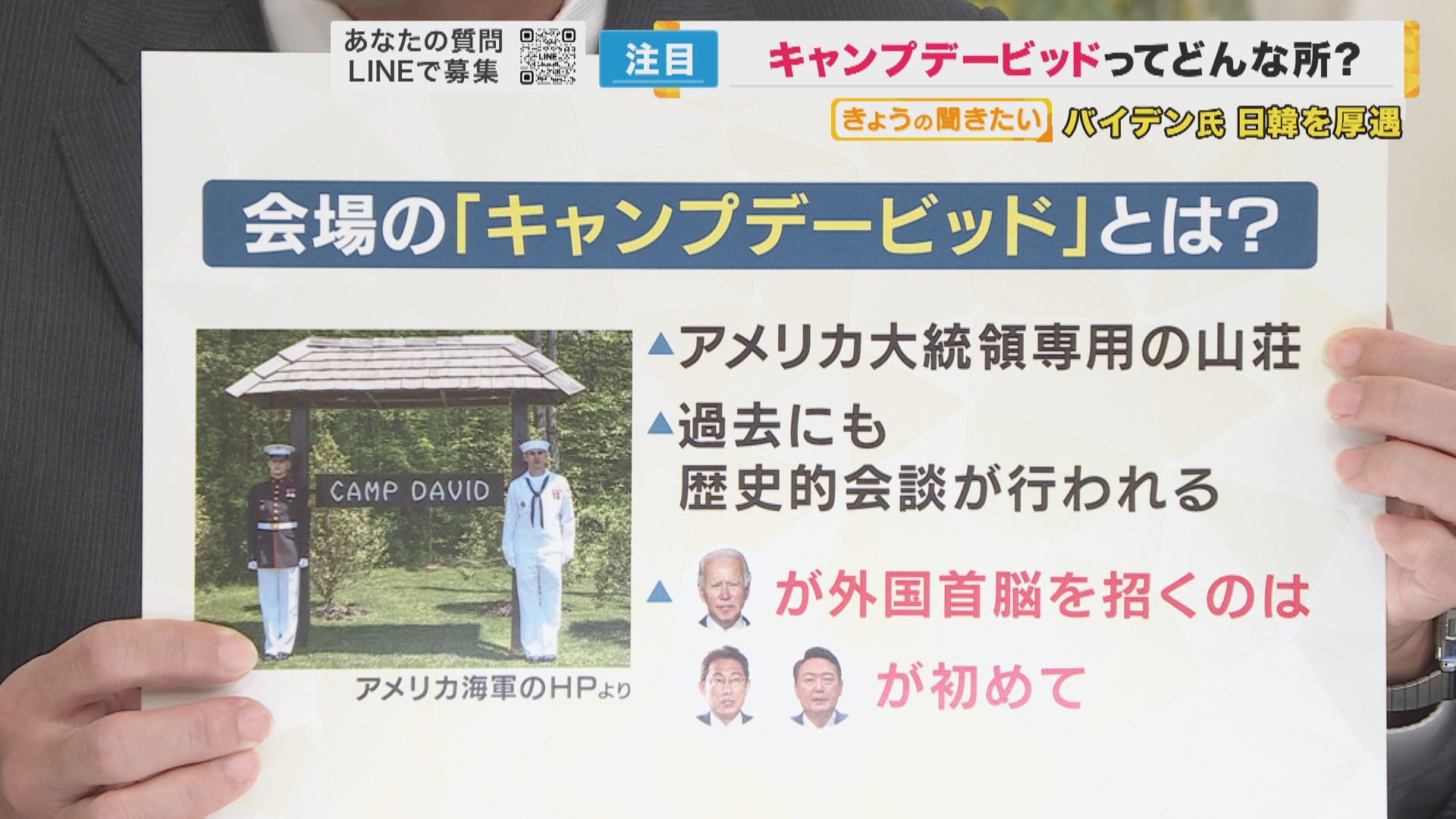 「非常に意気込みを感じます。それが分かるのが開催場所”キャンプデービット”です。ここはアメリカ大統領専用の山荘で、過去には、米・ソの首脳会談が行われたこともある特別な場所。日本だと小泉元首相が、ブッシュ元大統領とここでキャッチボールをして、日米関係の良さの象徴のように報じられたこともあります。この山荘に招くというのは特別な意味を持ちますし、バイデン大統領は気合が入っていると思います」