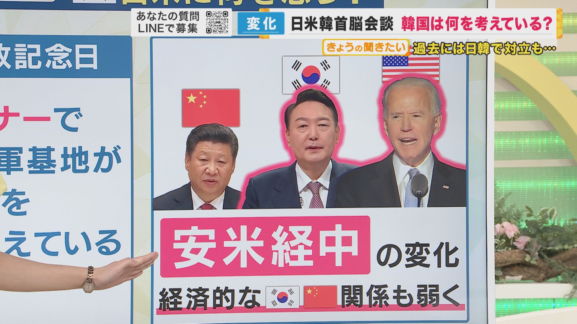 「日本外交の課題といいましょうか…日韓関係はずっと悪かったですよね。悪化が続いていた中で、韓国に尹大統領が登場しました。日本に対して歩み寄りをしてくれる大統領が現れたなかで、 岸田首相としてもここは、アメリカも含めた3カ国の関係を密にしていきたいところでしょう。