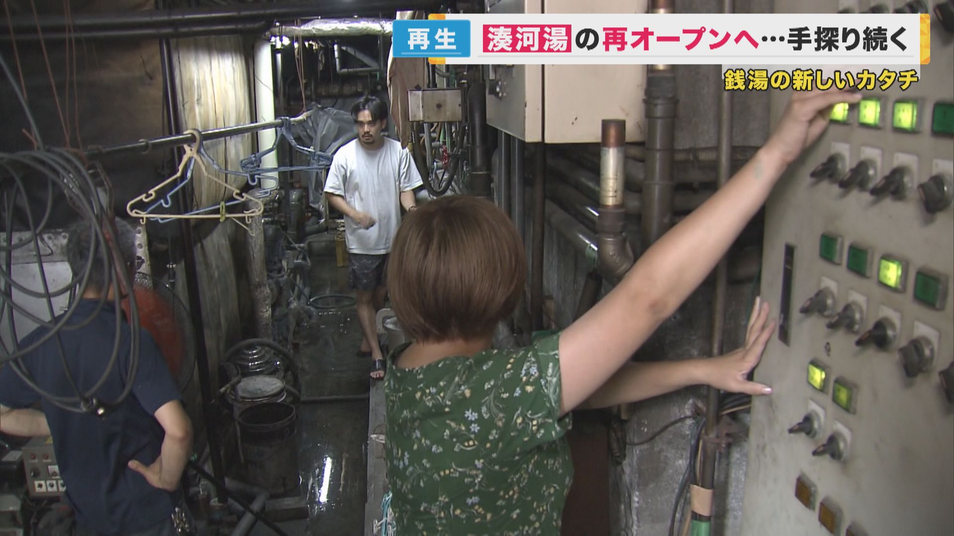 オープンまであと1カ月になった 7月12日。この日は風呂の湯を出して沸かすことができるのか、先代の淳さんの息子・英雄さんと機械を試運転します。