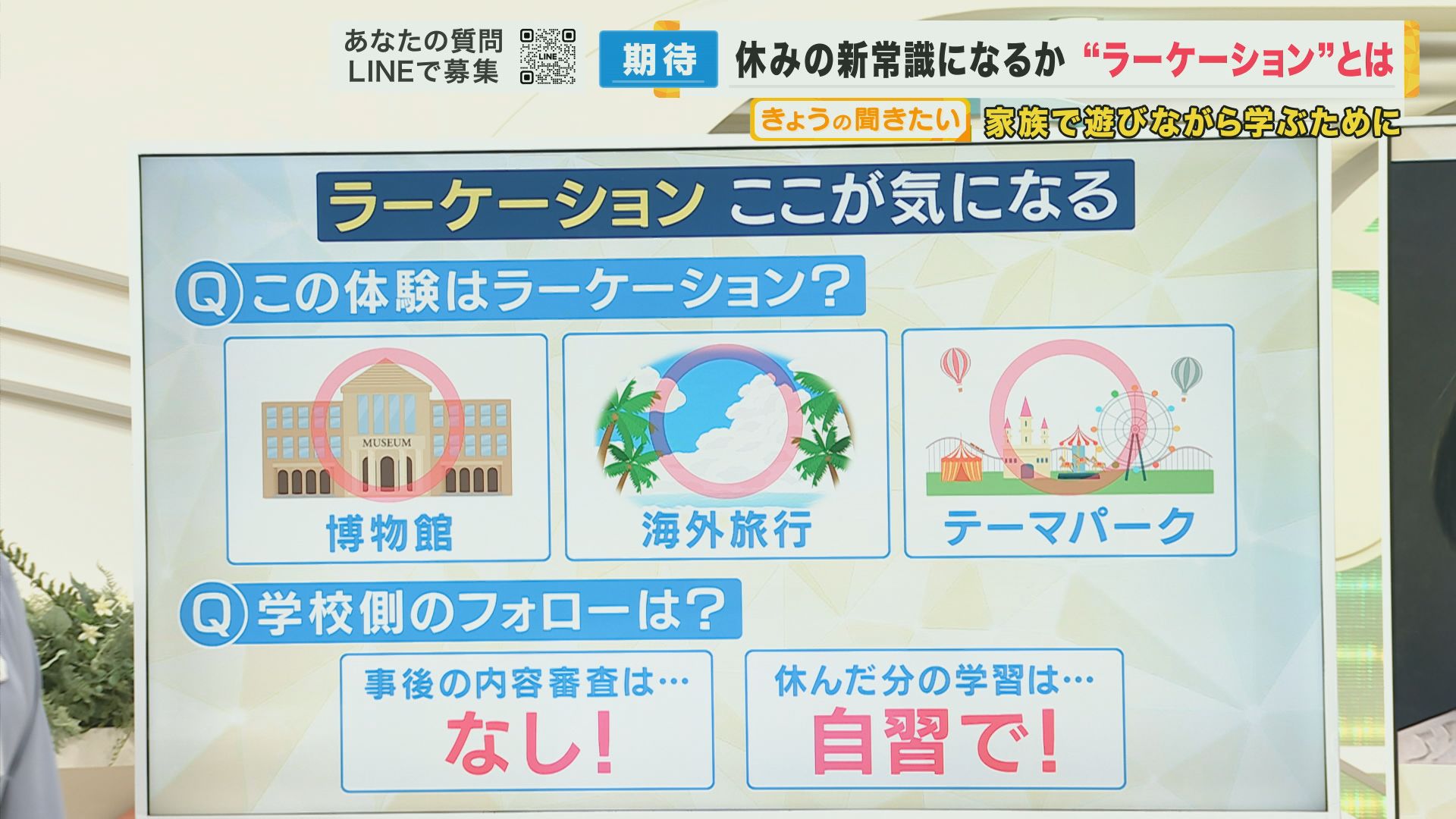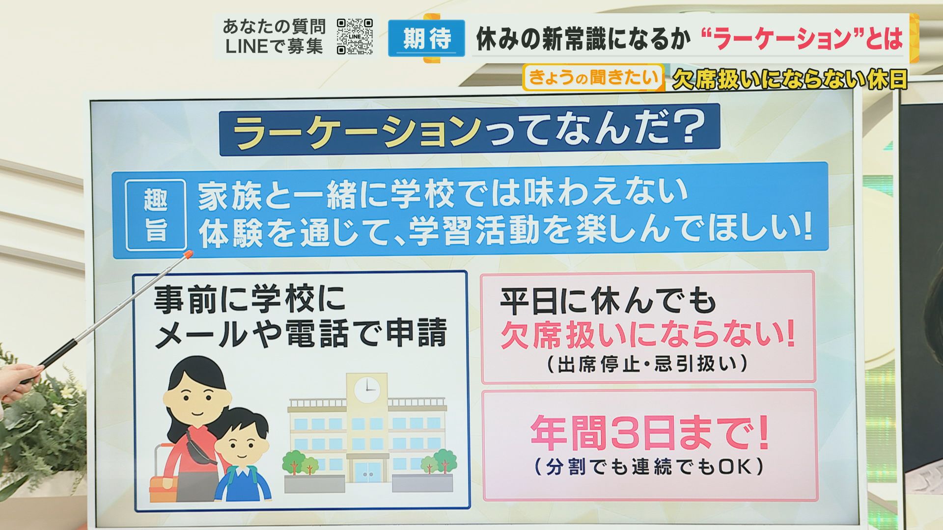 新たな“休暇のカタチ”「ラーケーション」 年に3日まで休みが「欠席にならない」 有給休暇取得の促進で「休み方改革」進むか 専門家は「子どもの能力形成に重要な機会」と指摘 (写真ギャラリー 1/7) 記事にもどる