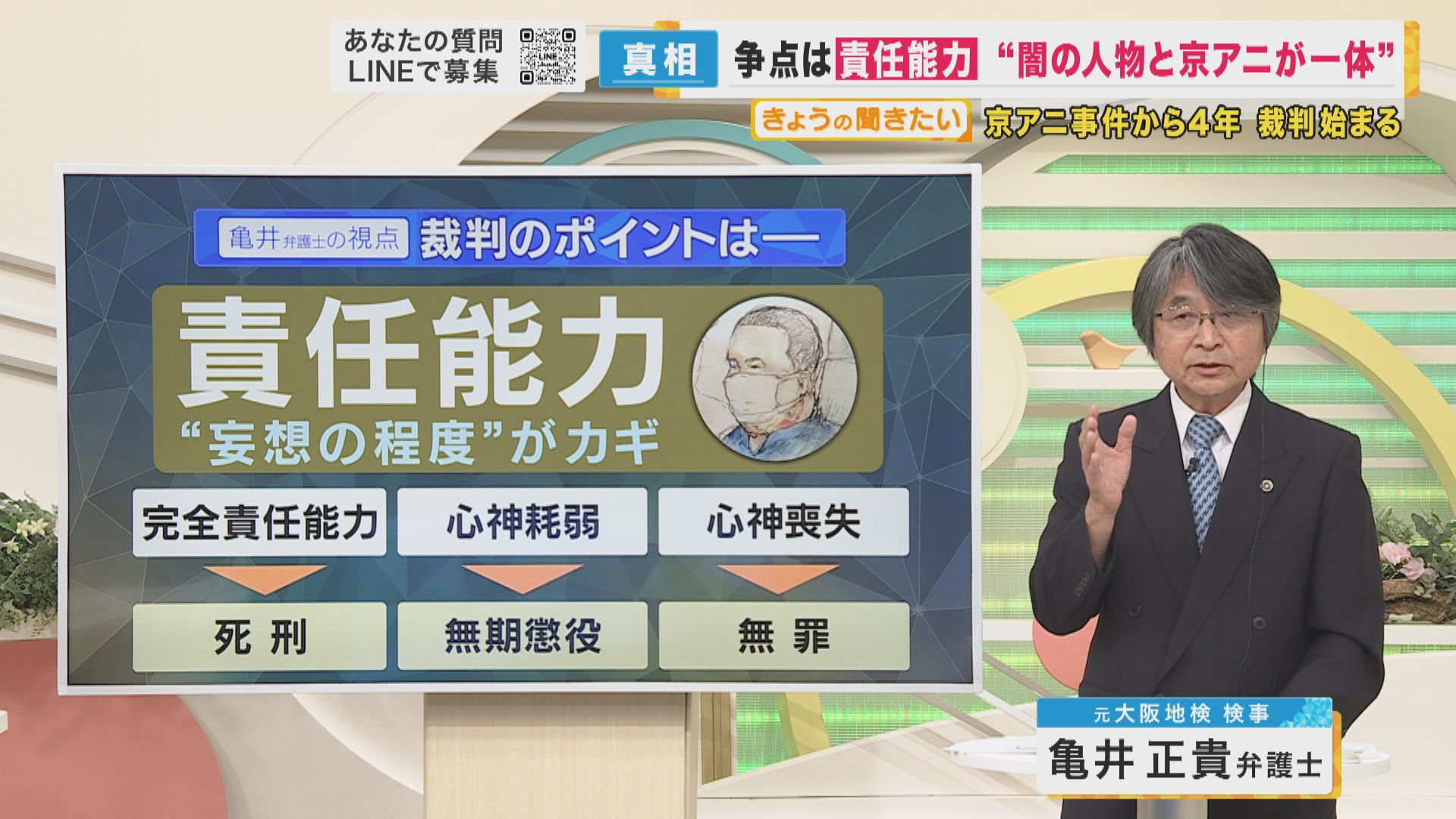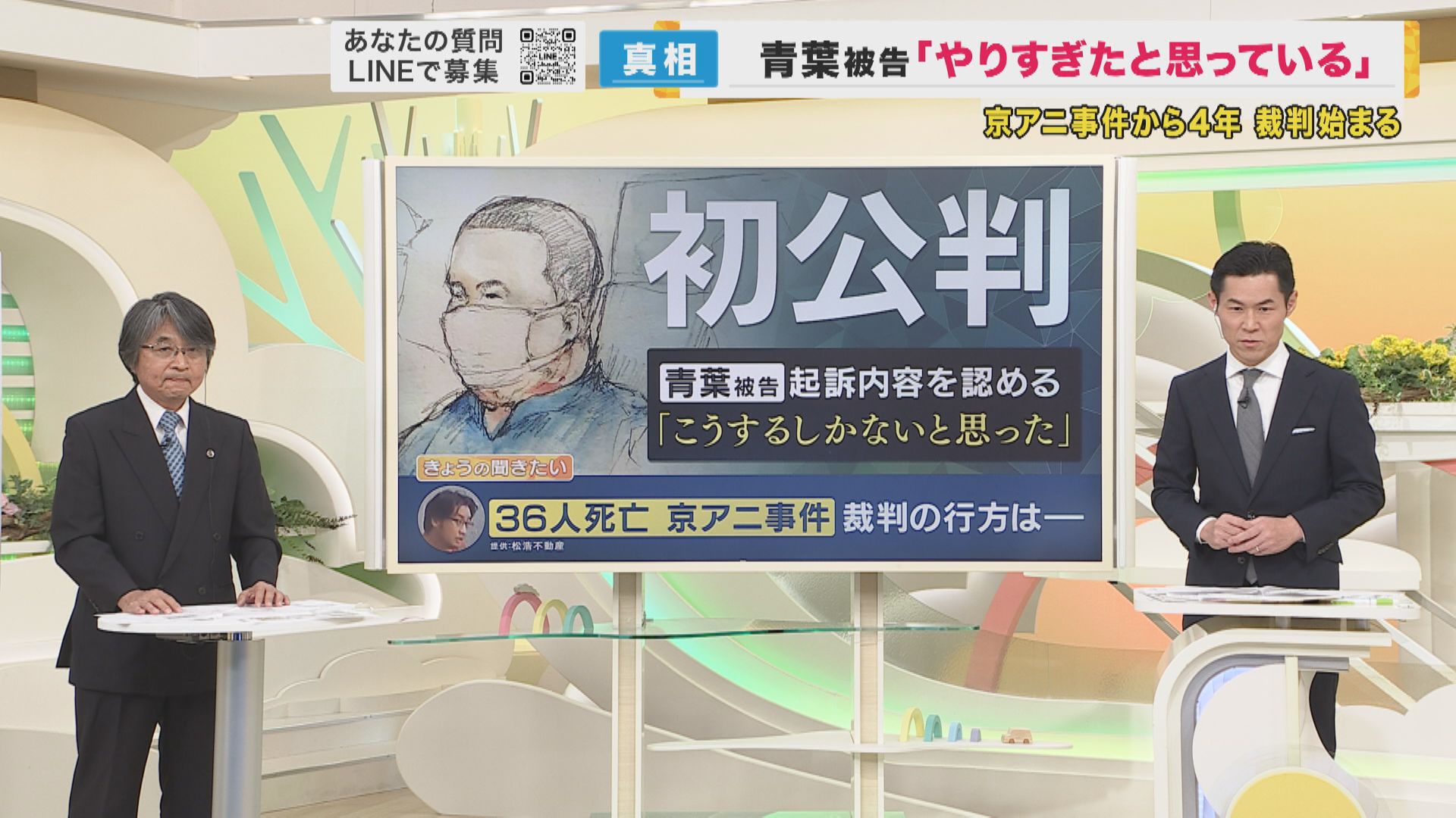 36人が亡くなった京都アニメーション放火殺人事件の裁判員裁判が5日、始まりました。事件から4年がたち、ようやく迎えた初公判。青葉被告は起訴内容を認めました。裁判の行方はどうなるのか、元検事で弁護士の亀井正貴さんの解説です。