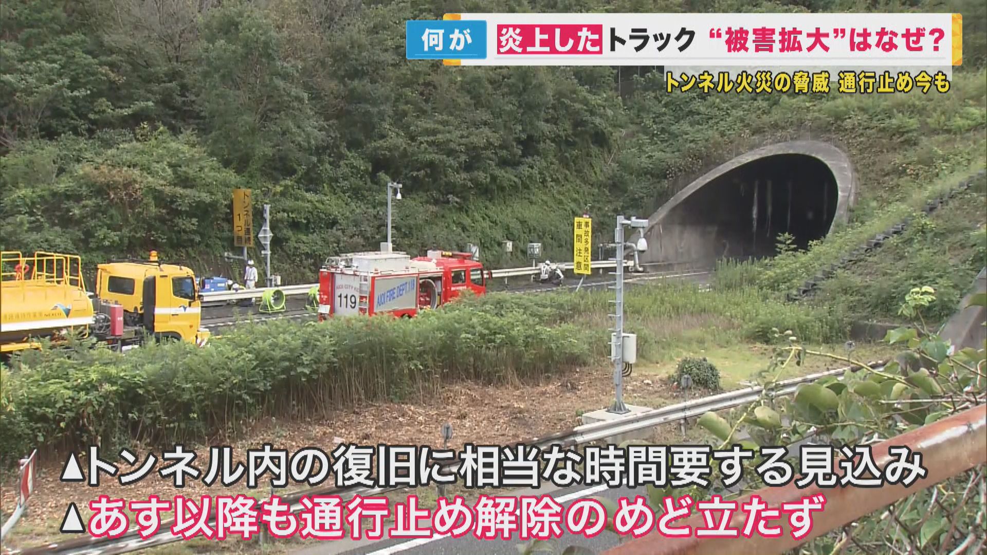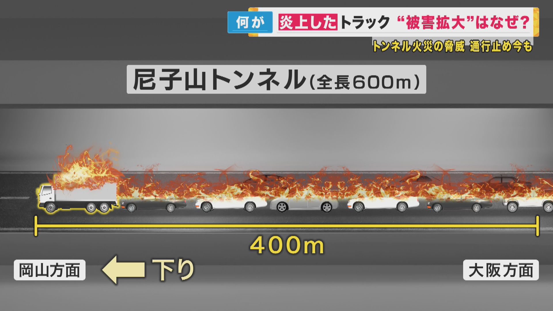 トンネル内では何が起こっていたのでしょうか? 消防などによると、トンネルは長さ約600メートルで、入口から400メートルほどの地点でトラックが炎上しました。