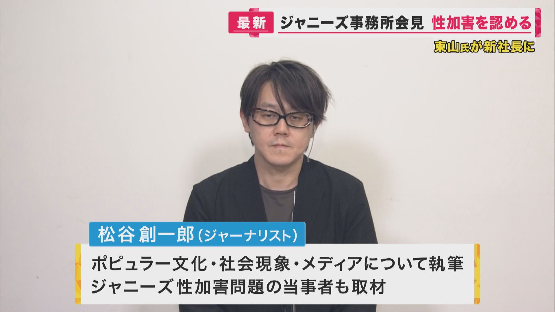 正直これは苦しいと思います。7日の会見でかなり追及された記者の方もいました。なぜ苦しいかと言いますと、被害者の方が週刊誌の方に『東山さんは1番よく知ってるぞ』と話しています、もうこれ結構前に書かれてますよね。今回ヒアリング調査を受けた人の中にもいます。そこを彼らの間でどうやってコミュニケーションを取るのかわからないですが、ここをズバズバ(東山さんが)言い切ってたのは、どこまで通用するのかな…と思います」