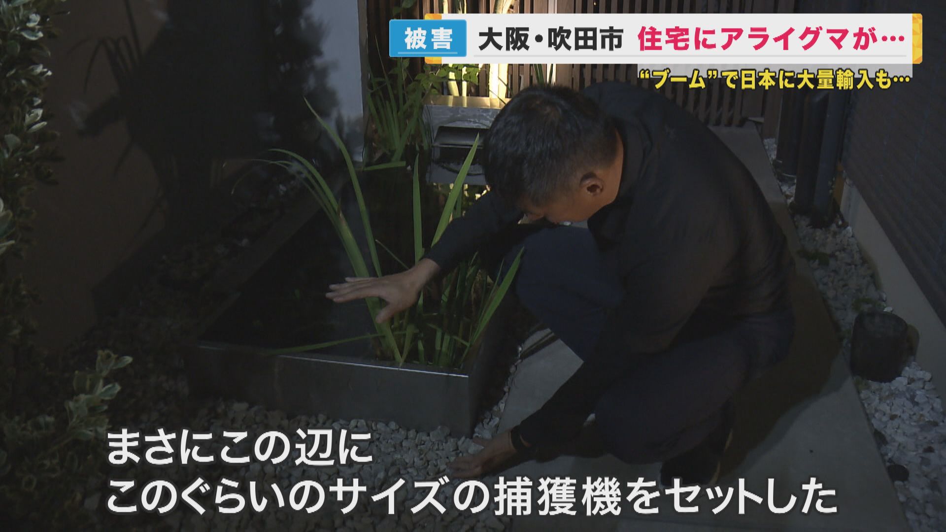 「『可能であれば、捕獲機を貸すので捕まえてください。捕まえた場合は、市の方で対応します』ということで。まさにこの辺(自宅の池側)にですね、このぐらい(アライグマ1頭分くらい)のサイズなんですけど、捕獲機を設置しまして」