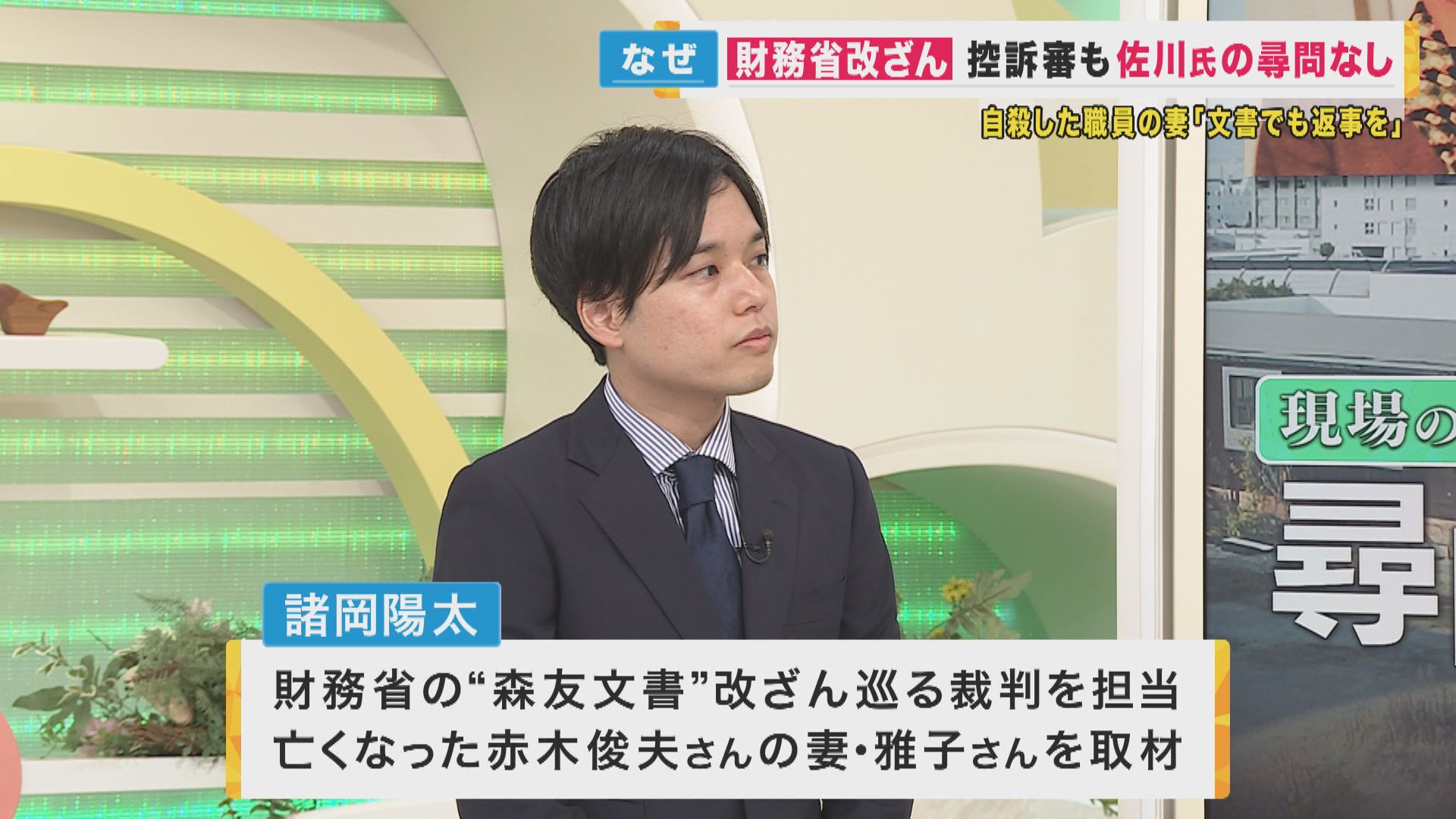 自殺した赤木俊夫さんの妻・雅子さんにとっては、本当に受け入れがたい判断となってしまいました。なぜ尋問は認められないのか。今後真実が語られることはないのか?この裁判を取材してきた、諸岡記者に話を聞きます。