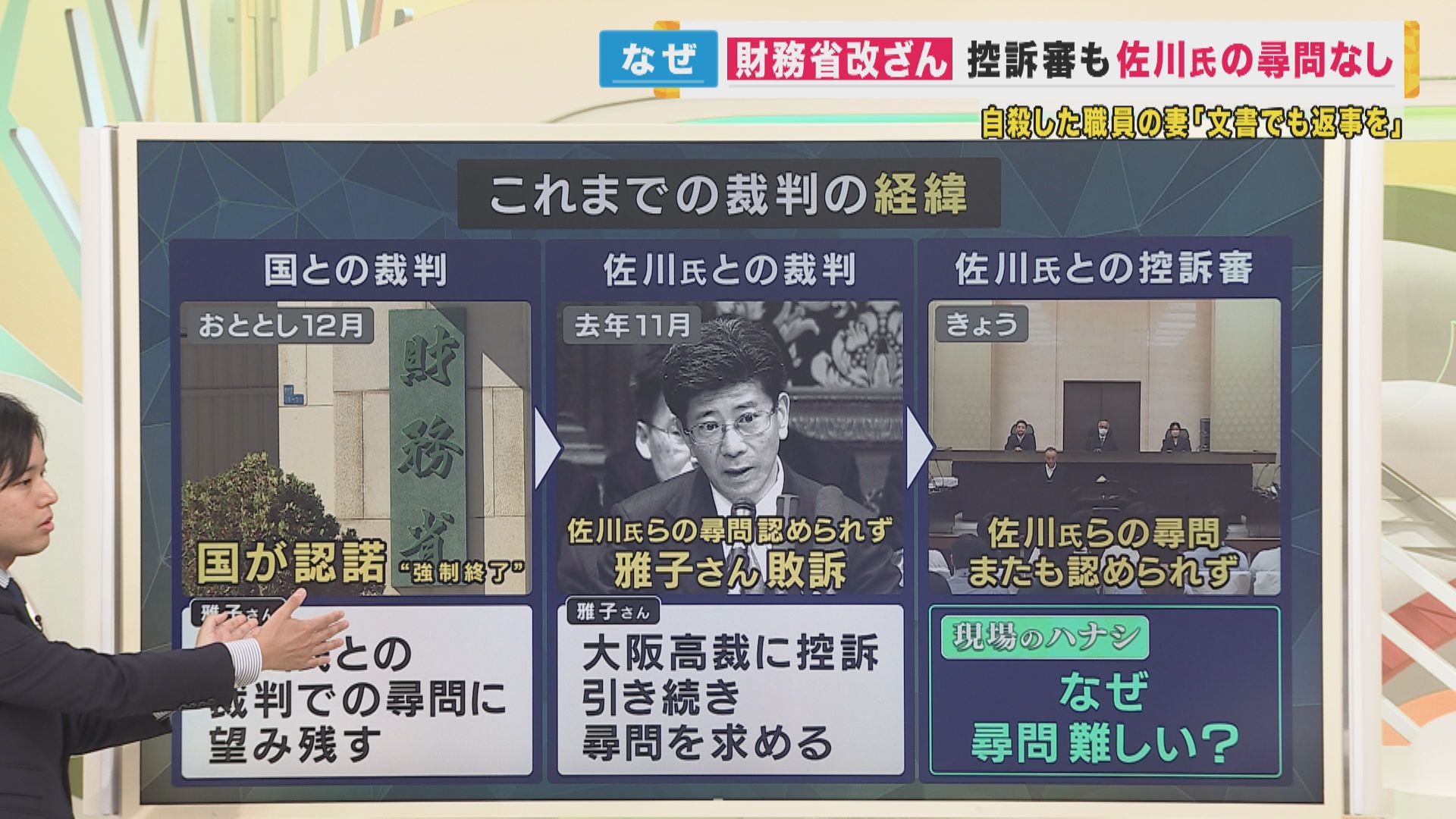 真実が公の場で語られることはもうないのでしょうか。財務省の公文書改ざんをめぐり、自殺した職員の妻が佐川元理財局長を訴えている裁判の控訴審が始まり、裁判所は佐川元理財局長の尋問を行わないことを決めました。