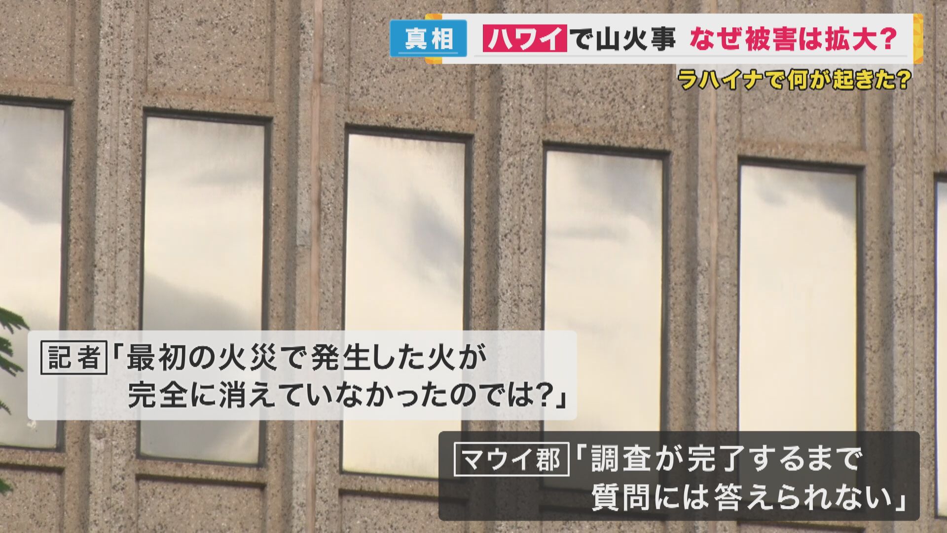 消防と消防を管轄するマウイ郡に、最初の火災で発生した火が完全に消えていなかったのではないかと問い合わせましたが、マウイ郡は「調査が完了するまで質問には答えられない」とコメントしました。