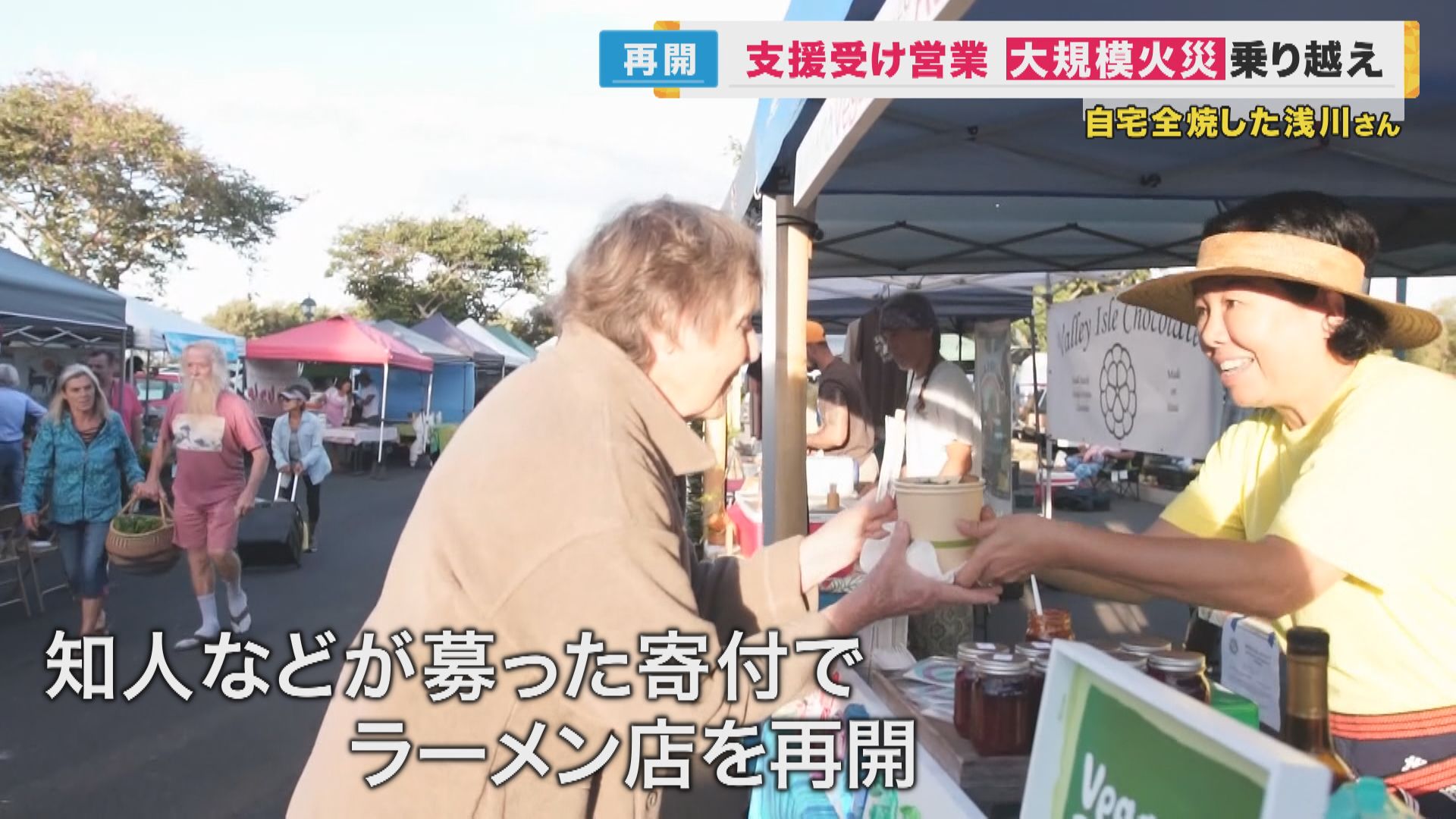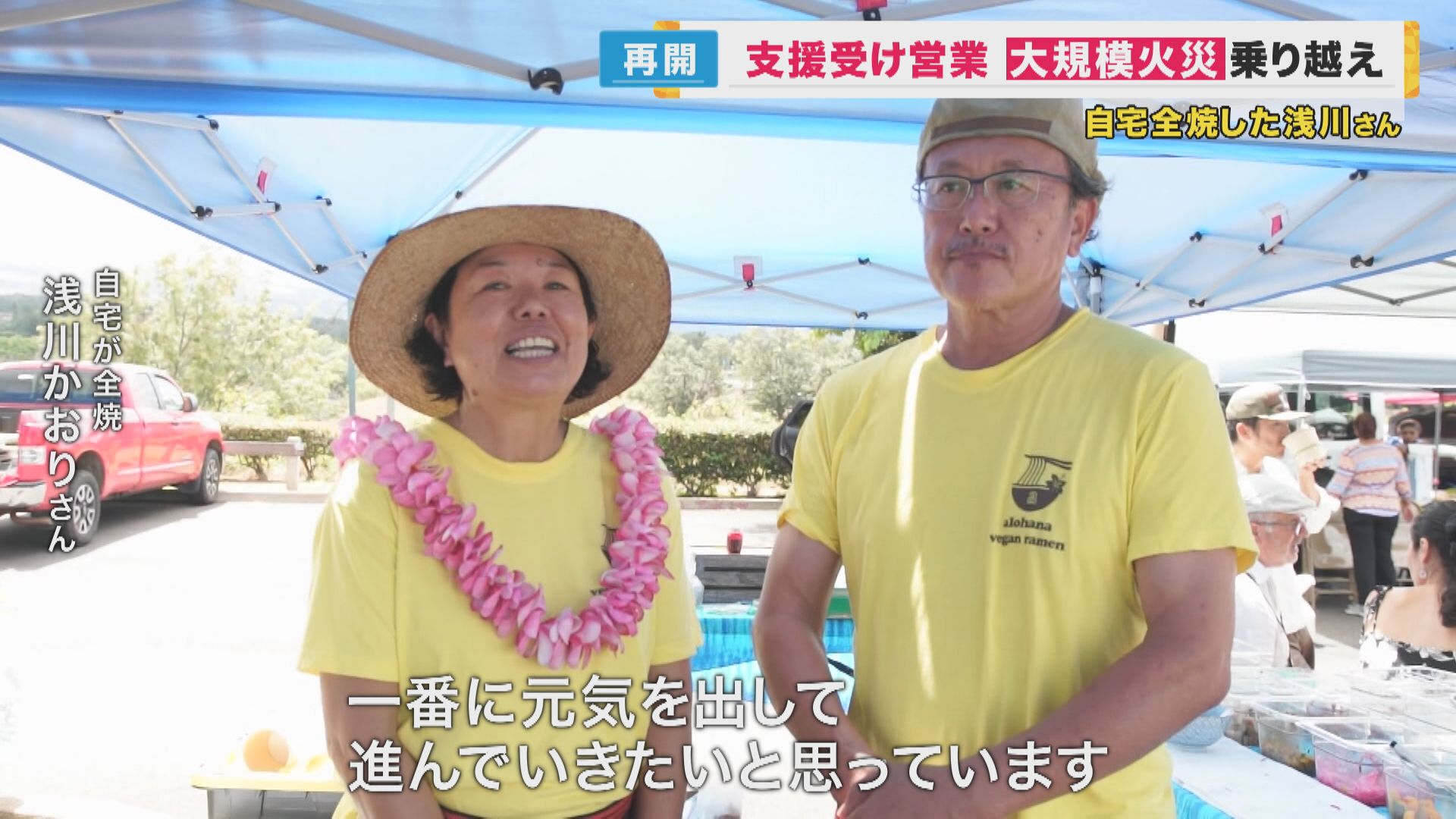 山火事から命からがら逃げてきた浅川さん家族も新たなスタートを切りました。1年前までマウイ島でラーメン店を開いていた浅川さん。中断していた営業を再開しようとした矢先に今回の火災で自宅が全焼しました。調理器具をすべて失いましたが、知人などが募った寄付で再び店を始めることができました。