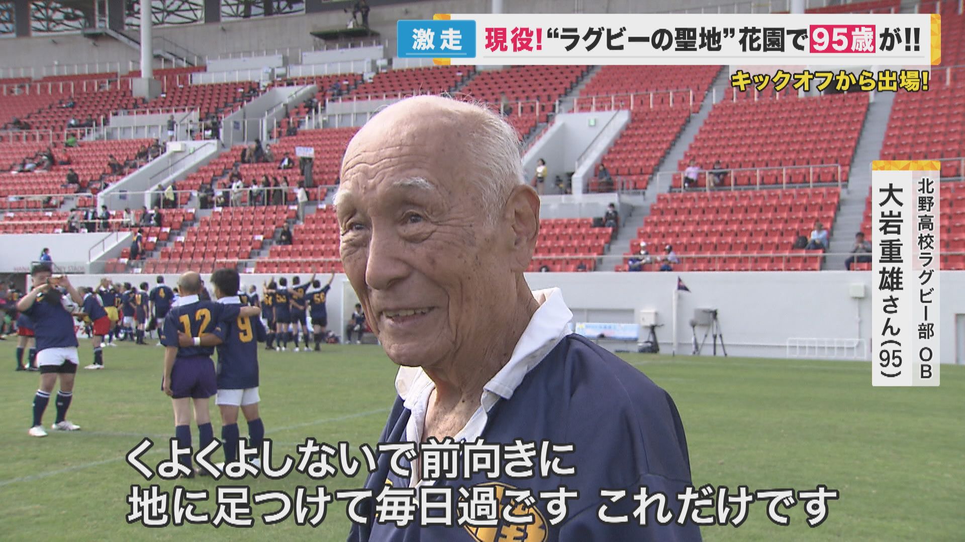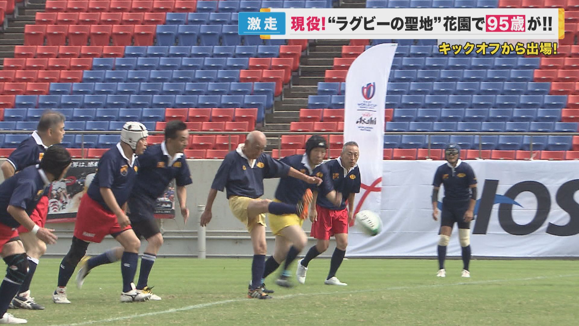 ラグビーの聖地、東大阪市の花園で、95歳のラガーマンが奮闘していました。