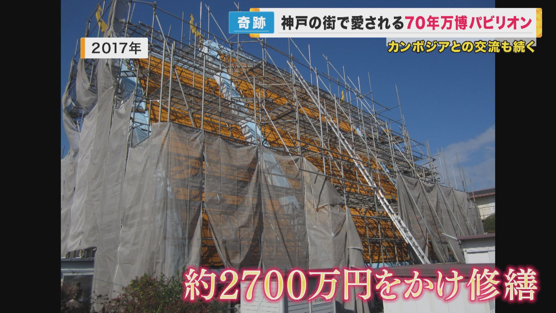 万博の翌年、新しく造られる、街のシンボルにするため、大阪から、神戸に移されたパビリオン。 50年がたち、建て替えの話も出ましたが、6年前に、およそ2700万円をかけ、建物を補修し、瓦も特注して、ふき替えました。
